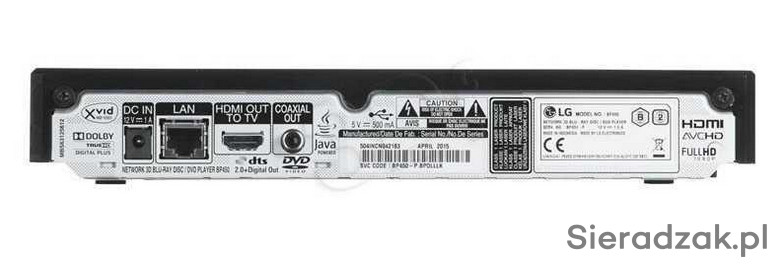 Obsługiwane formaty płyt: Blu-Ray, Blu-Ray 3D, CD-R, CD-RW, DVD-R, DVD-RW