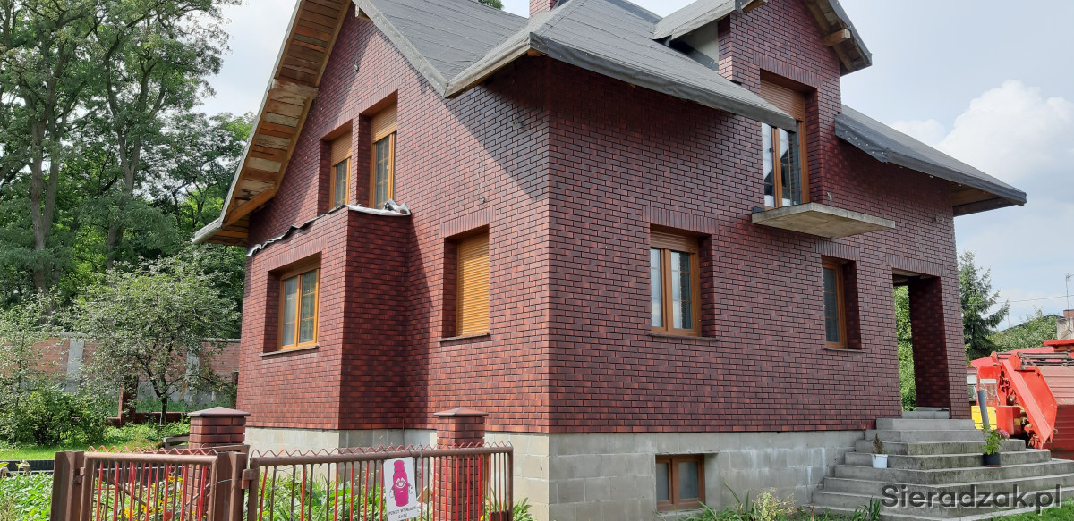 -Elewacje budynków z cegły klinkierowej.