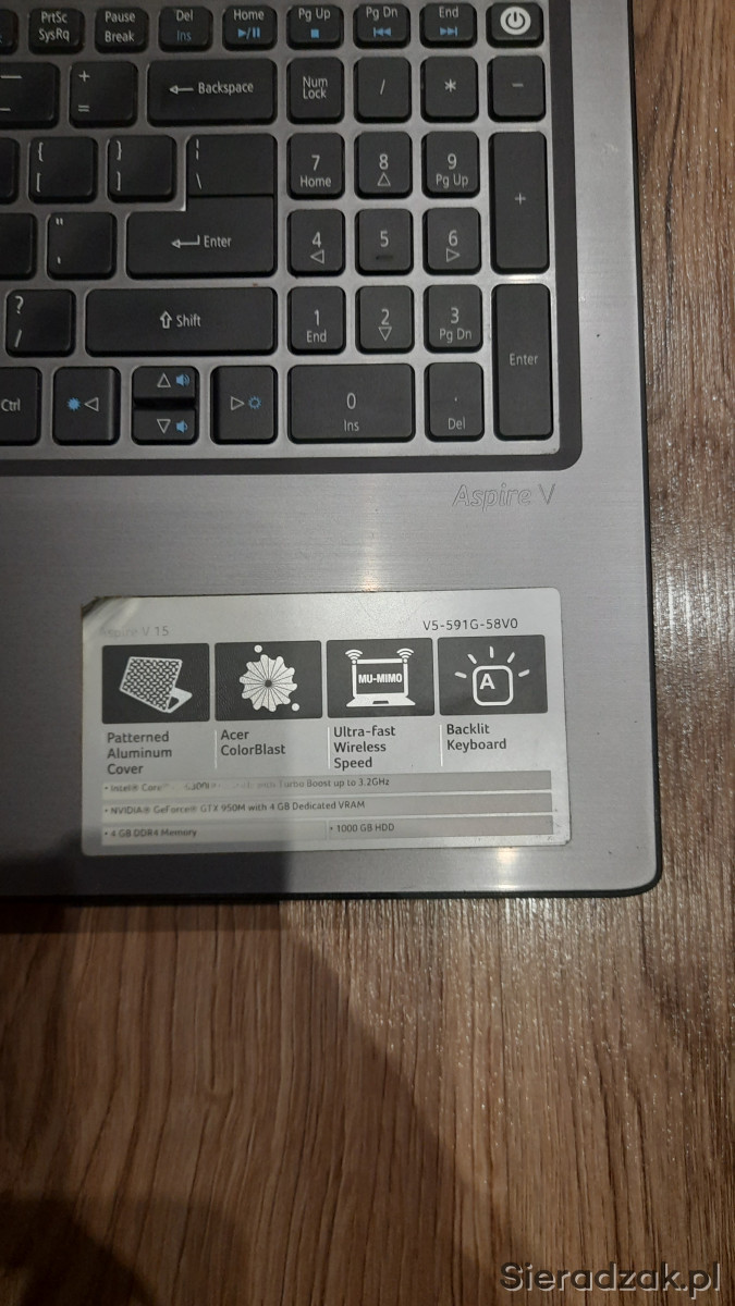Do sprzedania mam laptopa firmy Acer Aspire 5, laptop wyposażony jest w