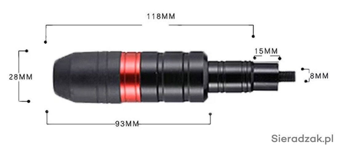 * Materiał: stop aluminium T6063 obrabiany w technologii CNC + ABS