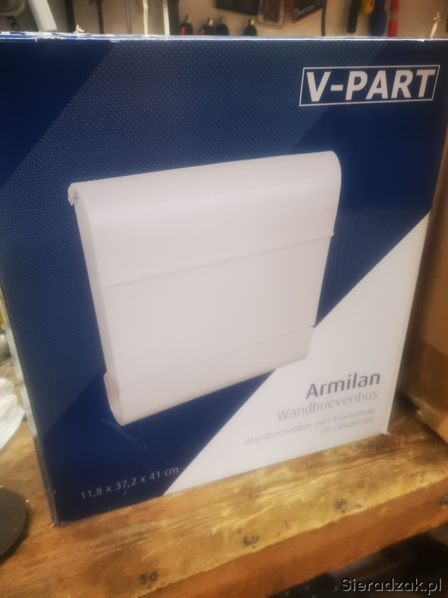 Nowa skrzynka na listy z zamkiem bębenkowym wraz z gazetownikiem V-part Armilan. Kod EAN: 8713631716883. Cena rynkowa ok. 500 zł także 1/5 ceny okazja!