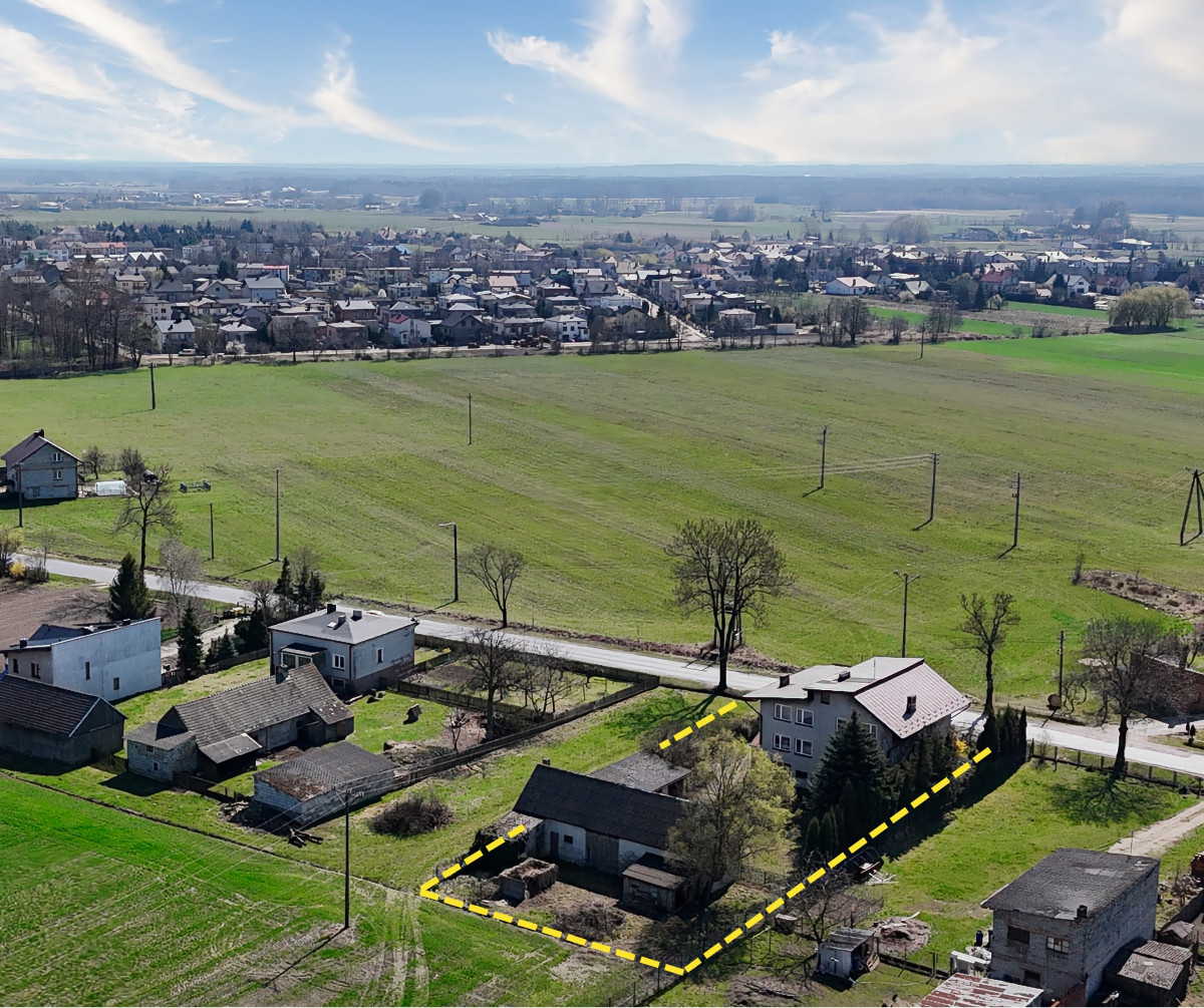 Dodatkowo na działce znajduje się garaż wolnostojący oraz część gospodarcza, a także murowana stodoła.