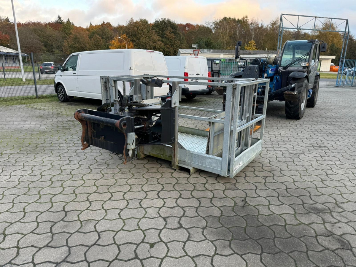 Ładowarka wyposażona w : łyżkę do materiałów sypkich, widły do palet, kosz do prac na wysokościach