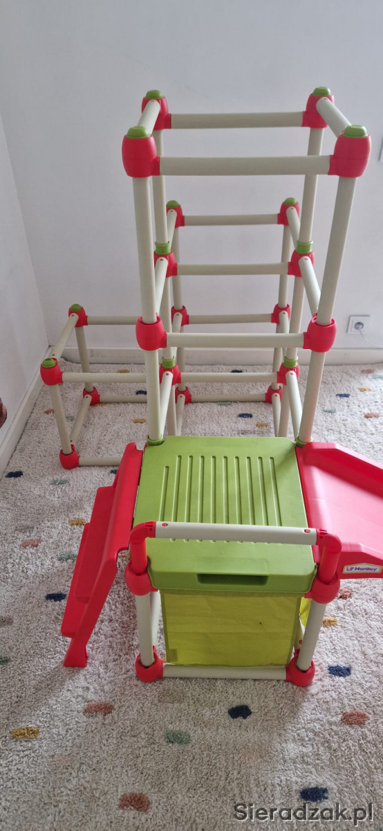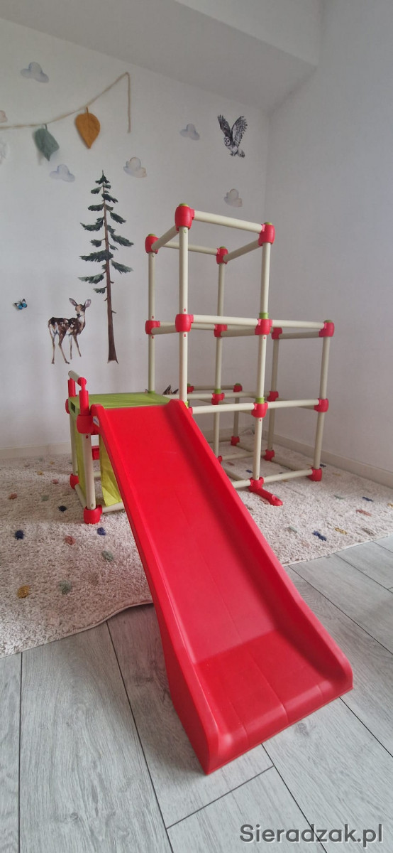 Zestaw używany tylko w domu, w bardzo dobrym stanie. Elementy można składać w różnych konfiguracjach (może być niżej niż na zdjęciach - dla mniejszych dzieci).