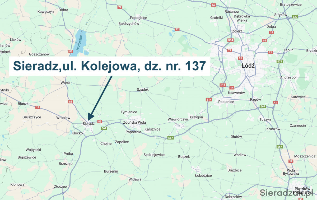 Działka numer 137 o powierzchni 1320 mkw o nieregularnym kształcie trapezu. Na terenie obowiązuje Miejscowy Plan Zagospodarowania Przestrzennego, Uchwała V/45/2003 Rady Miejskiej w Sieradzu z dnia 19.02.2003 r. Teren oznaczony 1U - tereny zabudowy usługowej.