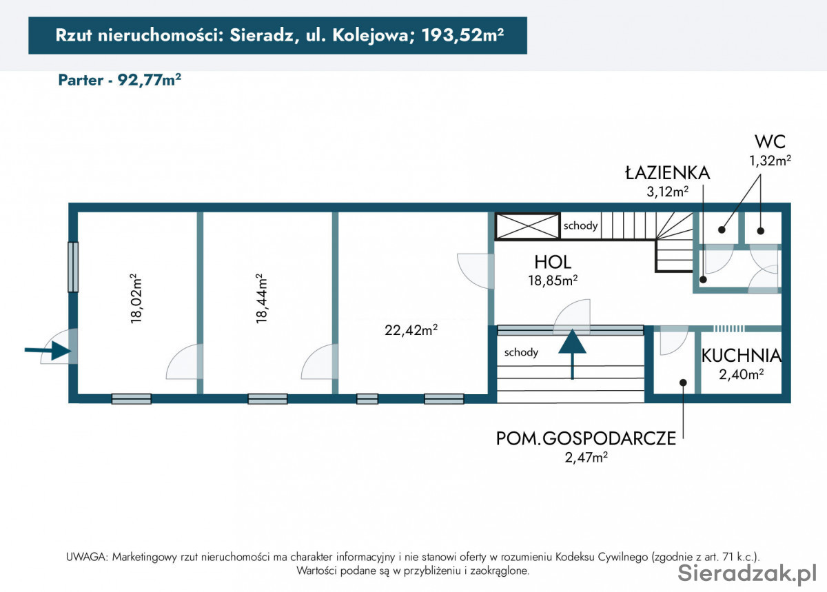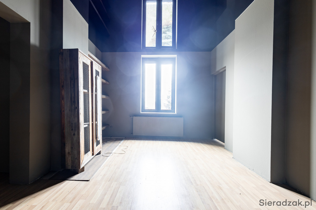 Nieruchomość położona jest w doskonałej lokalizacji, jest dobrze skomunikowana ze ścisłym centrum Sieradza, a także ma zapewnione miejsca parkingowe. Droga dojazdowa do nieruchomości jest asfaltowa, działka jest ogrodzona, z szerokim wjazdem oraz elektryczną bramą.