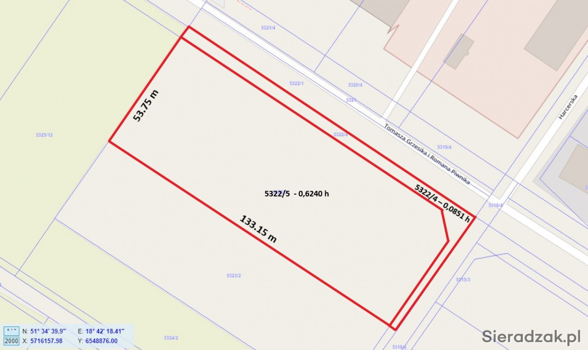 DO SPRZEDANIA GRUNT INWESTYCYJNY SKŁADAJĄCY SIĘ Z NIEZABUDOWANYCH DZIAŁEK OZNACZONYCH NR 5322/5 I 5322/4 W SIERADZU PRZY UL. GRZESIKA I PIWNIKA.
