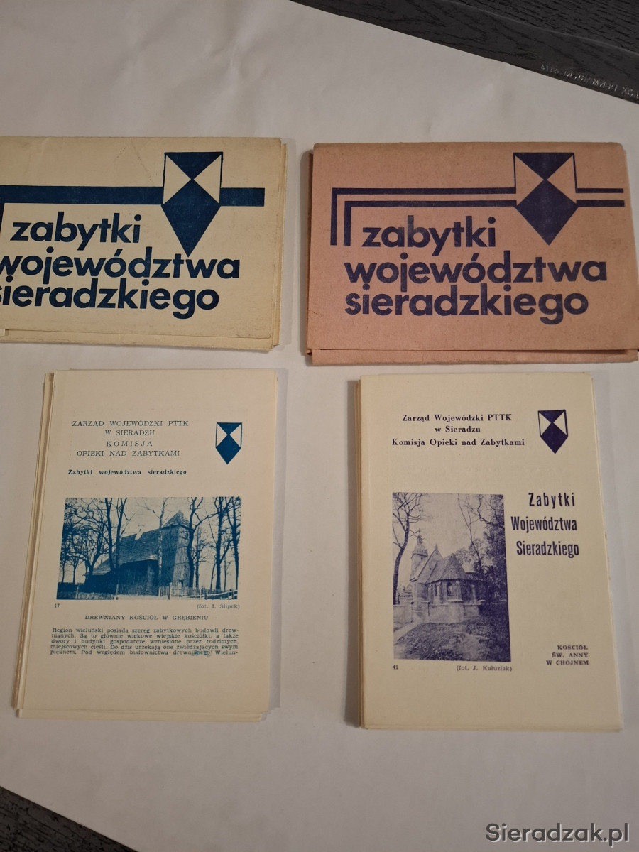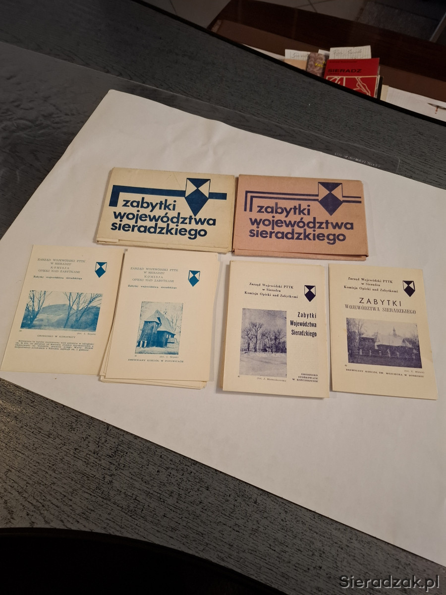 Dwa zestawy opisów zabytków z lat 80-tych. W 1 zestawie 10 broszurek, w 2 zestawie 15 broszurek.