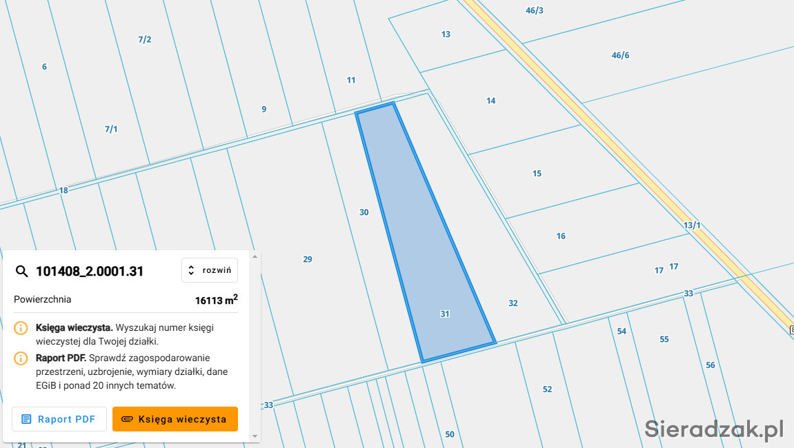 Działka o numerze ewidencyjnym 31. Więcej informacji pod numerem telefonu: 888 060 321.