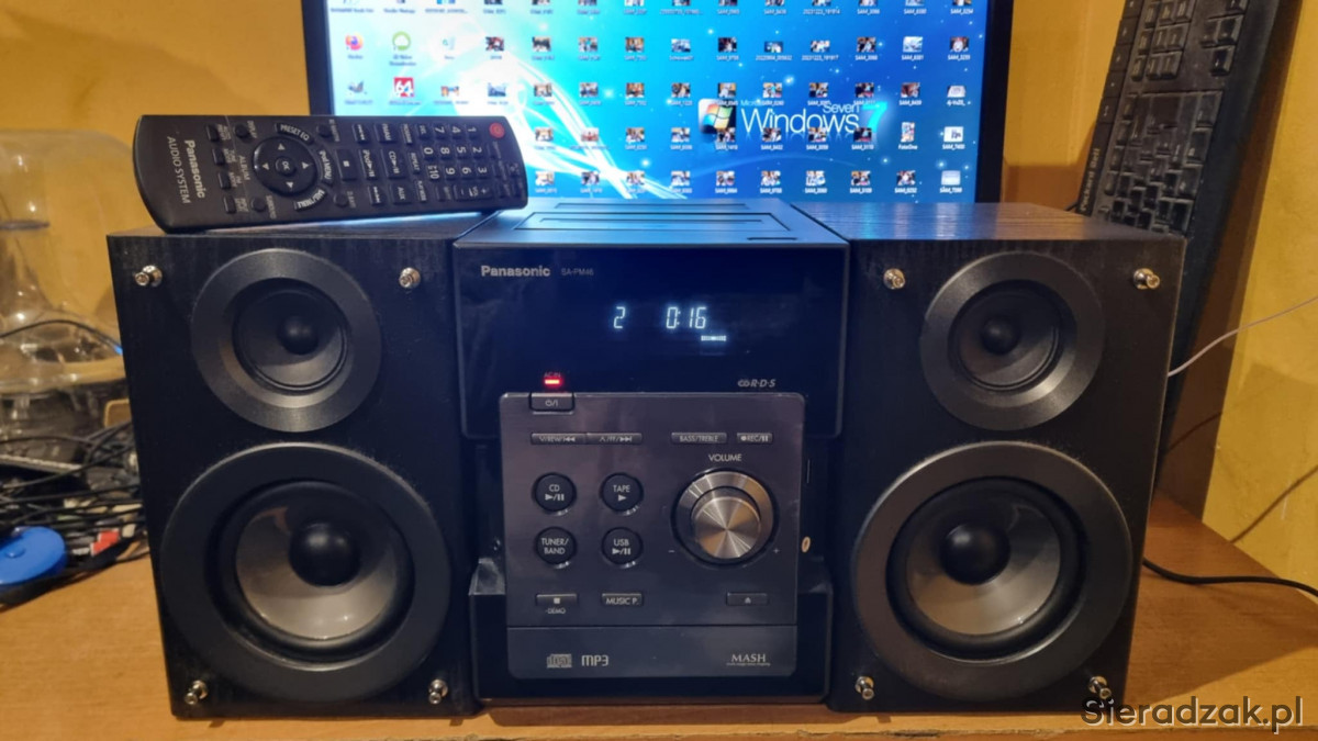 Wieża Panasonic SC-PM46 CD MP3 USB Kaseta magnetofonowa radio z RDS pilot.