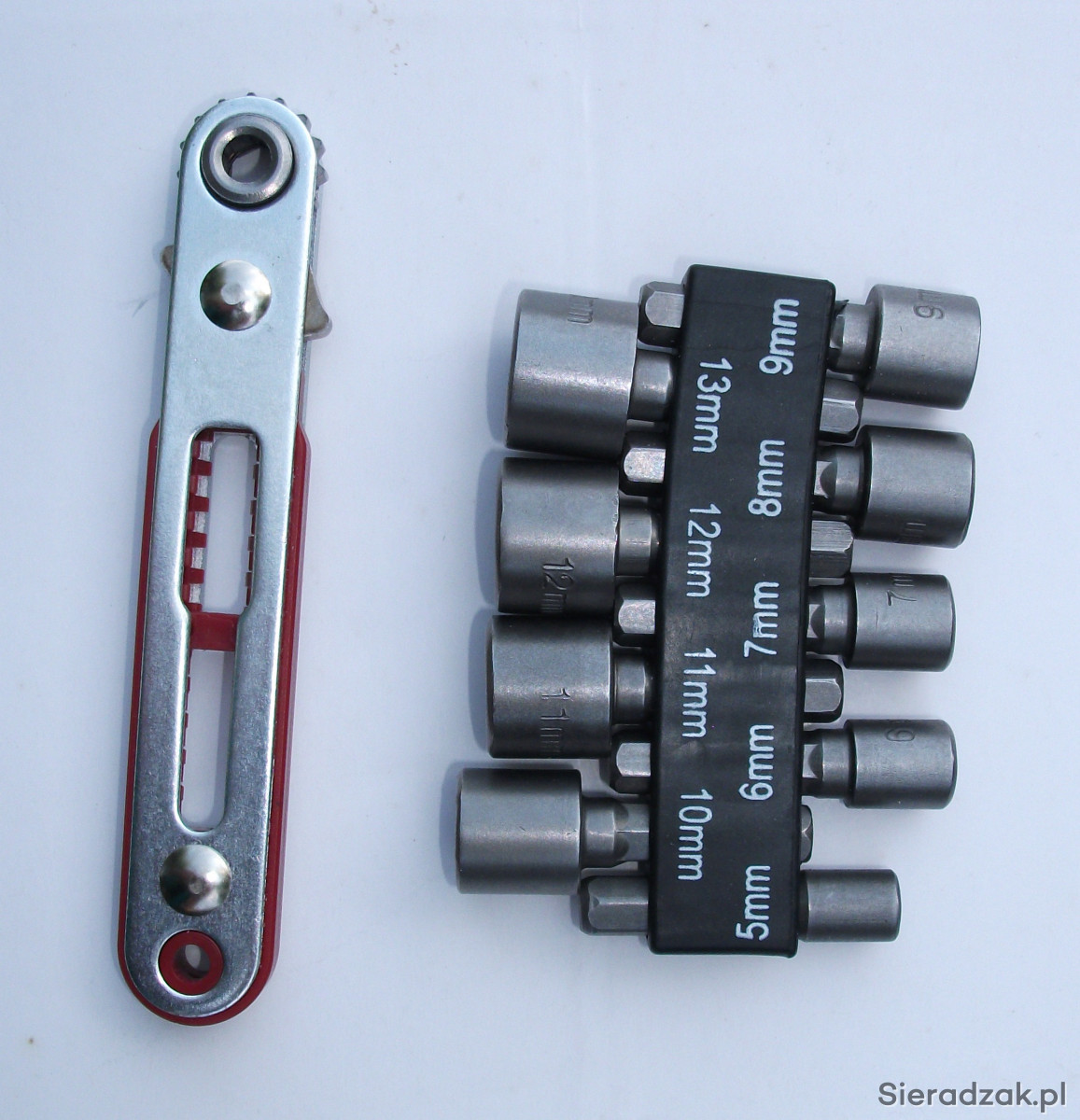 Opakowanie zawiera 9 kluczy: 5, 6, 7, 8, 9, 10, 11, 12 i 13mm w plastikowym uchwycie.