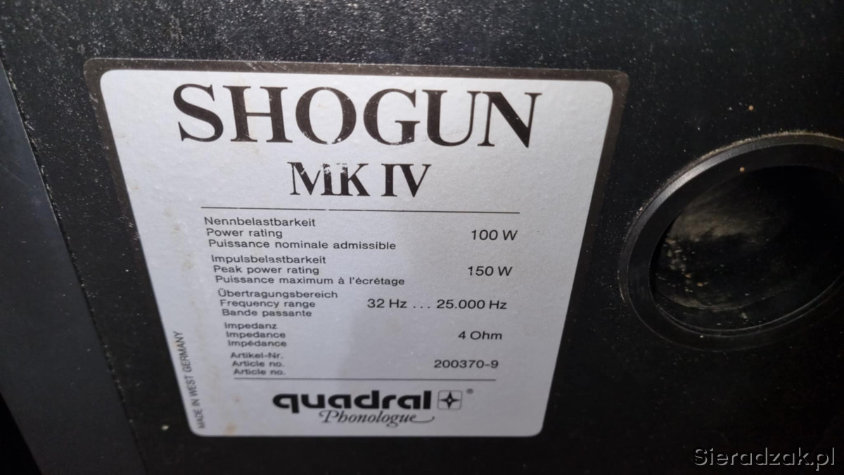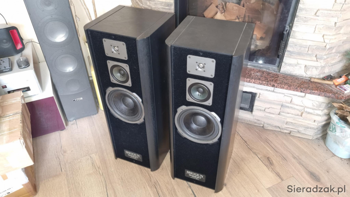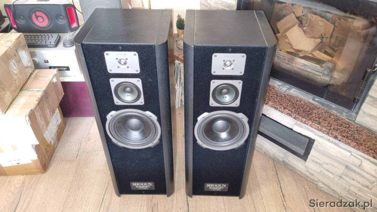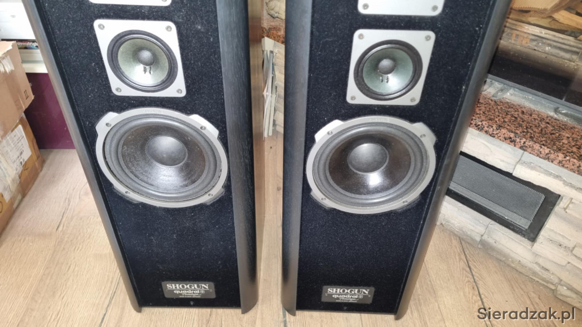 Potężne markowe kolumny głośnikowe Quadral Shogun MK IV. Niestety nie posiadam do nich maskownic. Technicznie w pełni sprawne. Waga około 25kg sztuka . Grają mocnym dźwiękiem nagłośnią bez problemu duży salon. Polecam.