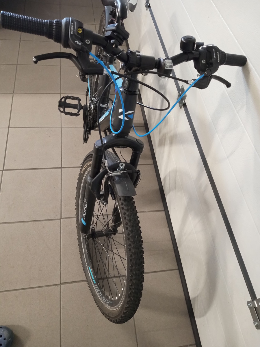 To solidny polski rower z ramą stalową na wzmacnianych dwu komorowych kołach 24″ oraz na osprzęcie Shimano Tourney z dużą ilością przełożeń (18).