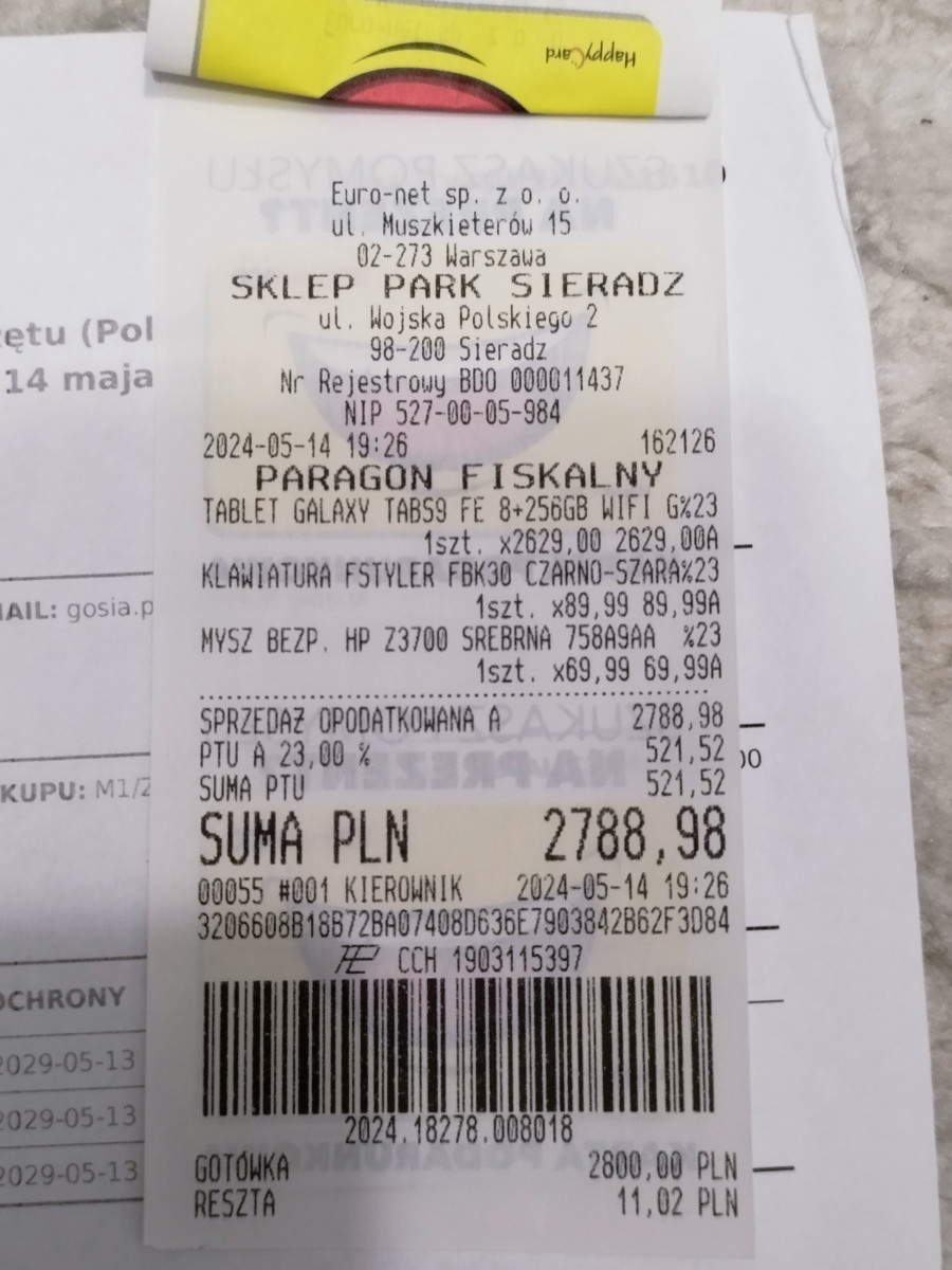 Sprzedam tablet zakupiony 14.05.2024 r.Posiada gwarancję stan jak nowy niestety nie mogę znaleźć rysika( można sobie dokupić koszt nowego to ok 20zł) dokładam klawiaturę i etui.