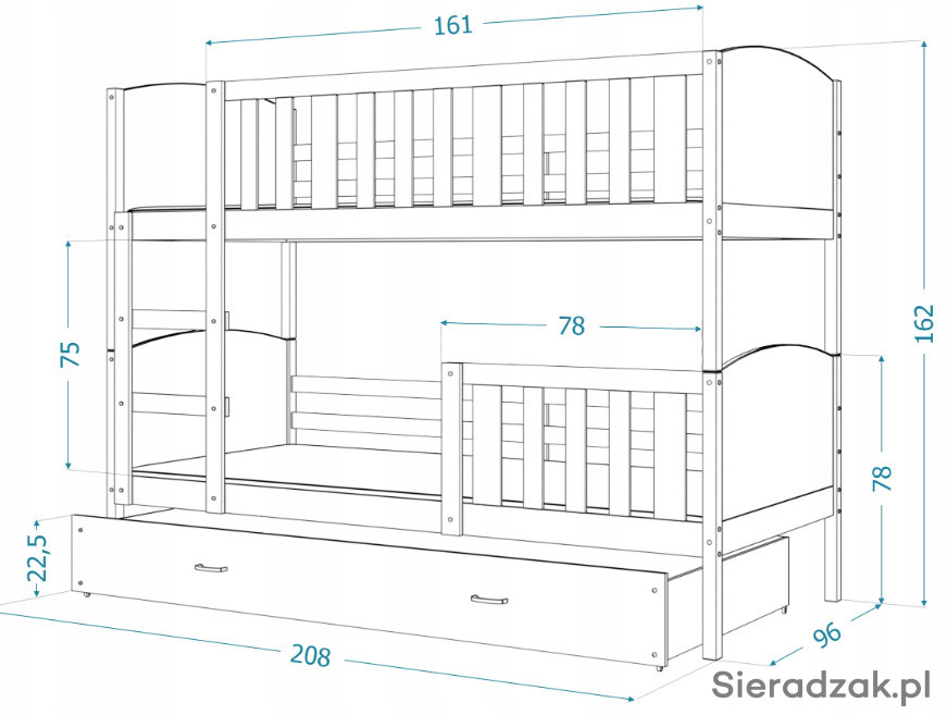 Łóżko piętrowe TAMI 80x160