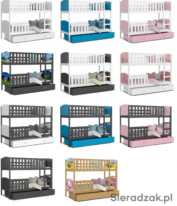 Łóżko piętrowe TAMI to model, który za sprawą kolorowych grafik na szczytach łóżka będzie odzwierciedlał charakter Twoich dzieci. Poprzez ten zabieg dzieci chętnie będą spędzać czas w łóżku, a wieczorne usypianie z pewnością stanie się łatwiejsze. Dzięki dużej liczbie grafik do wyboru masz całkowity wpływ na to jak będzie wyglądało łóżko Twoich dzieci. Nadruki wykonane są na najwyższej jakości folii i zabezpieczone laminatem, dzięki czemu stają się odporne na uszkodzenia.