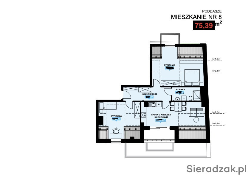 Na sprzedaż nowe mieszkanie na poddaszu 75,39 m2 przy ulicy Warckiej/Żwirki i Wigury 12.