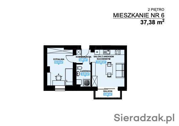 Mieszkanie na drugim pietrze z balkonem,