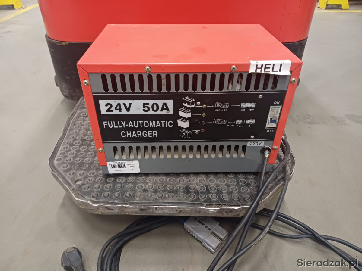 Do wózka dołączona jest ładowarka/prostownik 24V 50A, co umożliwia szybkie i wygodne ładowanie sprzętu. Dodatkowo, wózek ma aktualne badania UDT, co zapewnia pełną legalność użytkowania i bezpieczeństwo pracy w każdym środowisku przemysłowym.