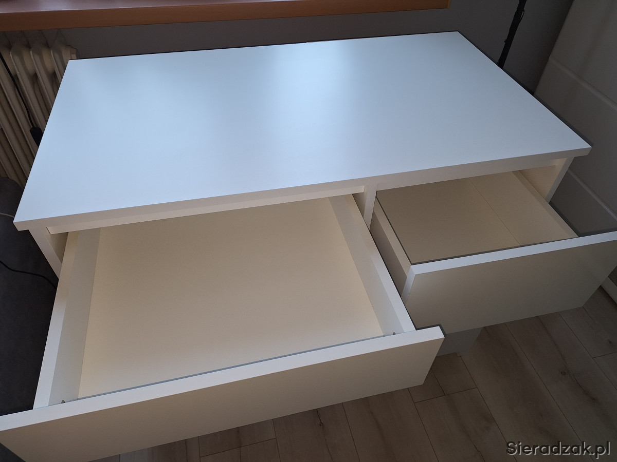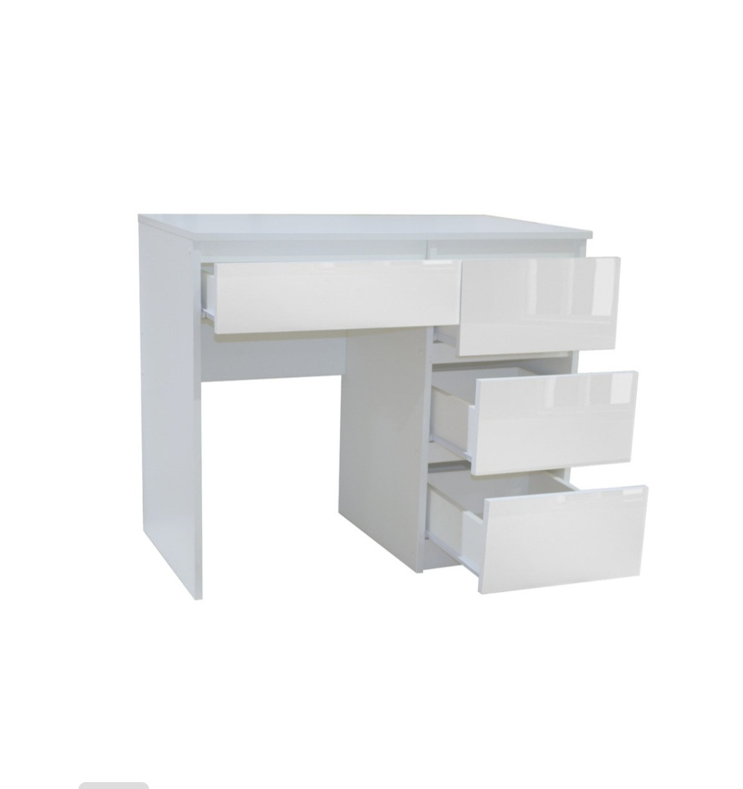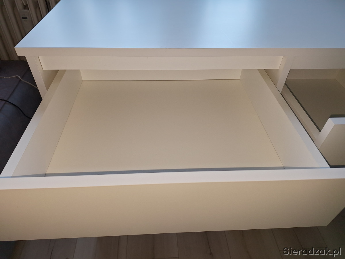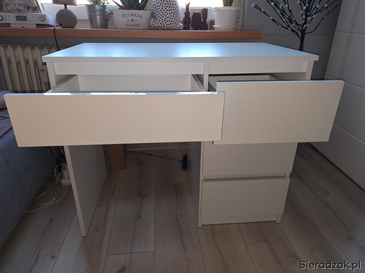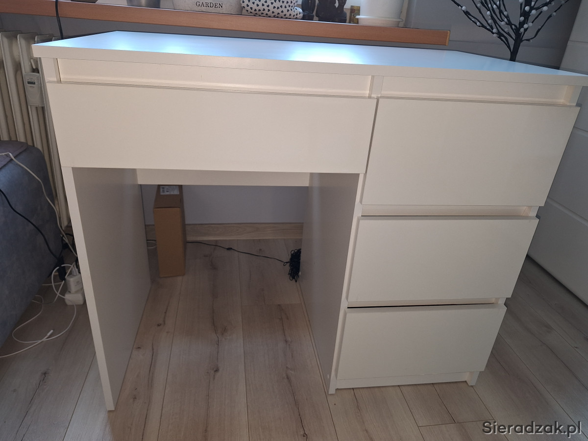 Sprzedam białe biurko (połysk) o wymiarach dł. 90cm/szer.50cm/ wys.76. Biurko juz skręcone. W zasadzie nowe, jedynie stało nieużywane. Stan bardzo dobry. Cena za którą zostało zakupione to 362zl. Odbiór osobisty na terenie Sieradza
