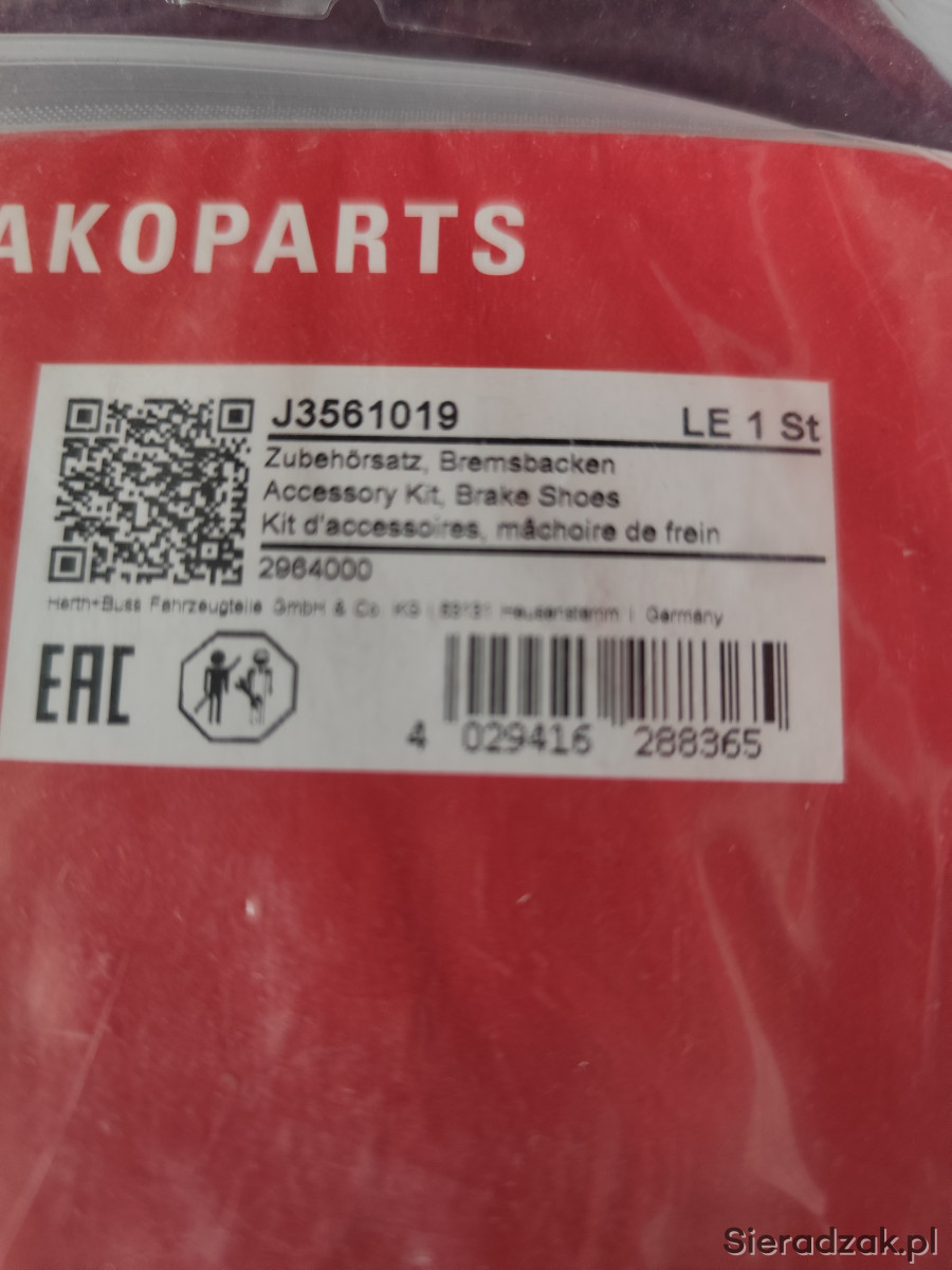 HERTH+BUSS JAKOPARTS J3501065 szczęki hamulcowe