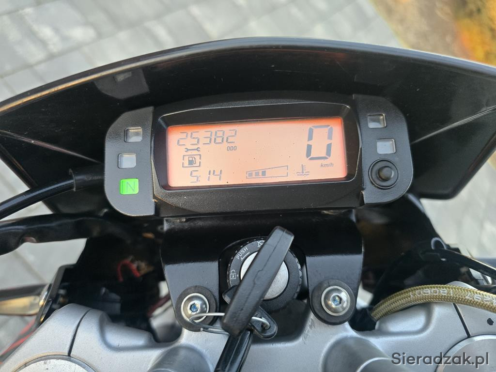 Do sprzedania Aprilia RX125 z 2019r. Wersja z ABS. Motocykl świeżo sprowadzony z Niemiec bezpośrednio od właściciela. Wizulnie motocykl w ładnym stanie. Posiada normalne ślady użytkowania. Mechanicznie wszystko sprawne. Silnik, skrzynia i sprzęgło pracuje jak należy. Opony w ładnym stanie. Przebieg 25382km udokumentowany do samego końca. Silnik chłodzony cieczą na wtrysku. W motocyklu założone są nowe klocki hamulcowe przód i tył, nowe łożyska kół, nowy akumulator oraz nową okeinę która występowała w modelach na 2024r. Dodatkowo założone są ledowe dynamiczne kierunkowskazy przód i tył oraz akcesoryjny uchwyt tablicy rejestracyjnej. Do motocykla jest pełna dokumentacja (faktury za naprawy, wydruki z przeglądów TUV, 2 kluczyki itp). Aprilia ma ważny niemiecki przegląd TUV do maja 2026r. Motocykl na prawo jazdy kategorii B. Za dodatkową opłatą mogę zamontować sporotowy wydech Leovince lub Arrow. Kupujący zwolniony z opłaty skarbowej. Zapraszam na oględziny i jazdę próbną. W ofercie posiadam inne motocykle. Możliwość dowozu (do 100km transport gratis). Na więcej pytań chętnie odpowiem pod numerem telefonu 667-702-600.