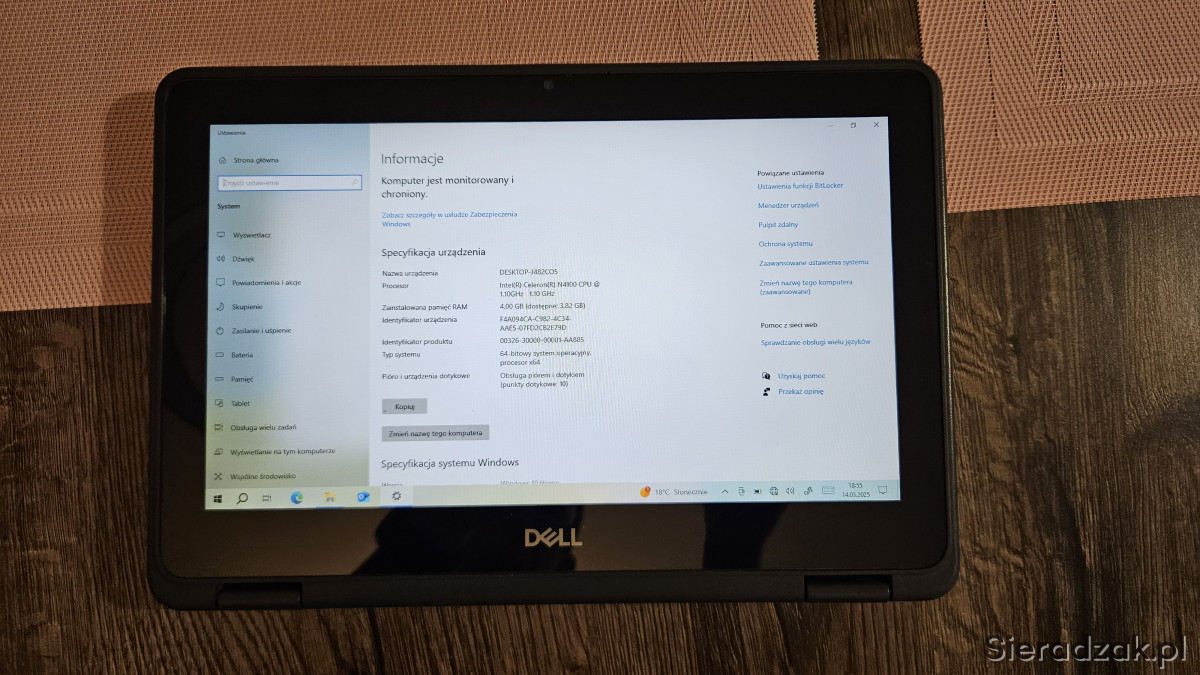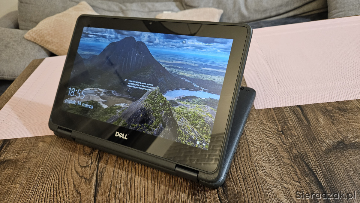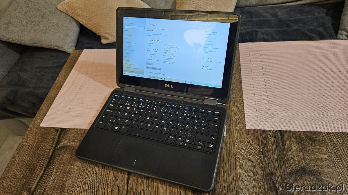 na sprzedaż posiadam laptopa x360 11.6 cala Dell Latitude 3190 2in1, jest to laptop typu 2 w 1, ponieważ posiada dotykowy ekran obsługiwany palcem jak w telefonie a ten ekran możemy jeszcze złożyć na płasko tak że robi nam się z laptopa tablet.