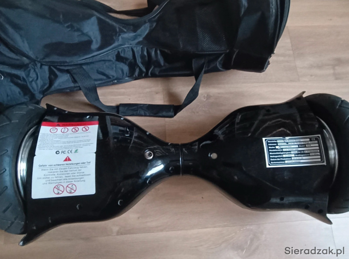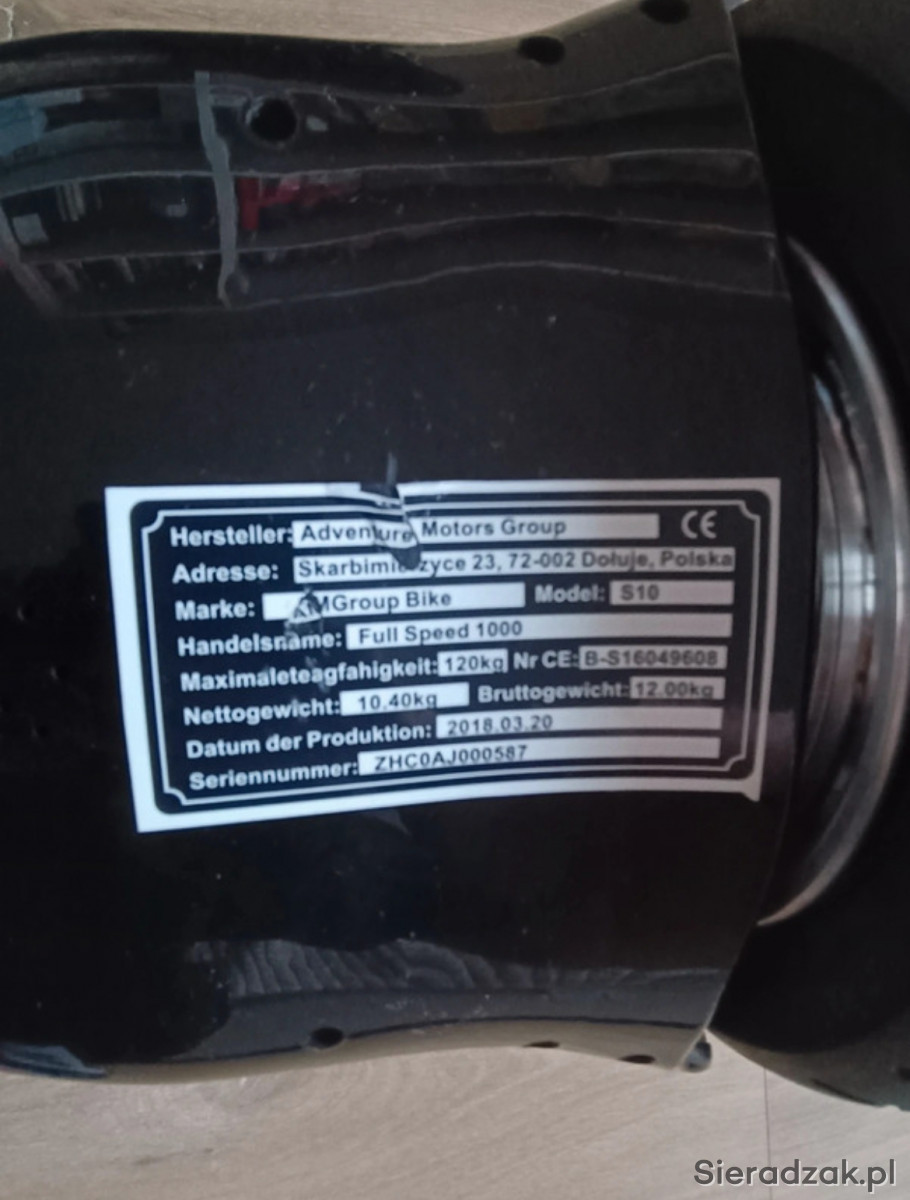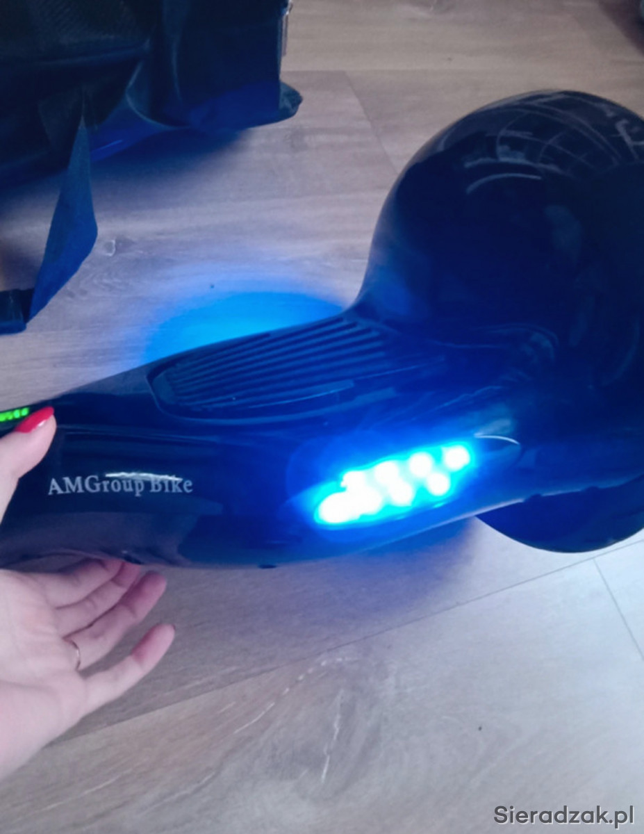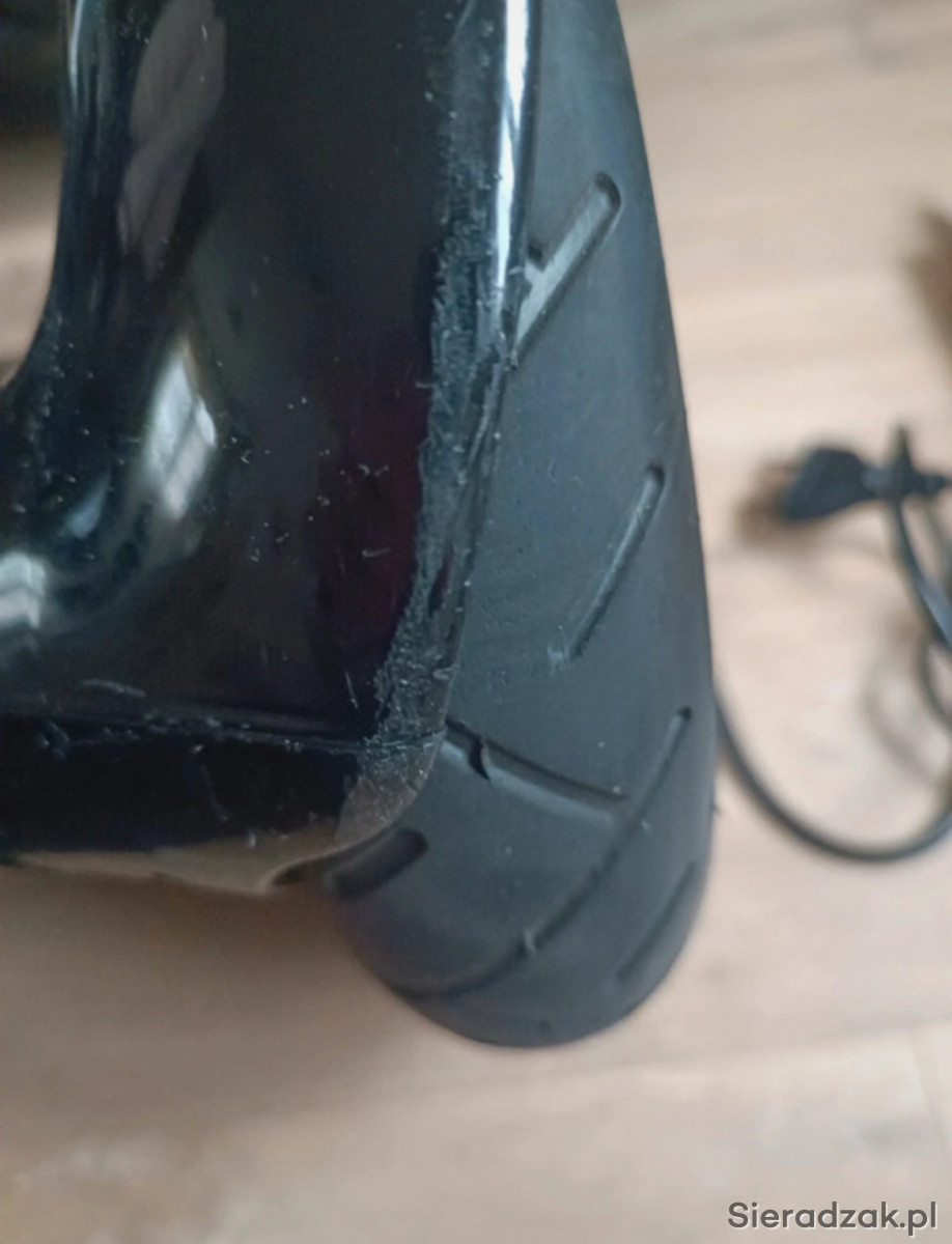 Dyskorolka elektryczne AMGroup S10 w bardzo dobrym stanie. Jedyne ślady użytkowania to obtarcia i w dwóch miejscach zdarty kolor, natomiast wizualnie wygląda bardzo dobrze i wszystko sprawnie działa. Nie ma żadnych pęknięć. Dołączone do niej ładowarka i pokrowiec. Waga to około 12 kilo, została zakupiona około 4 lata temu używana sporadycznie kilka razy. Ma opcję bluetooth, działające ledy oraz wszystko inne też jest sprawne. Bateria też jest bardzo dobra i po pełnym naładowaniu można jeździć przez długi czas (nawet z włączoną muzyką).