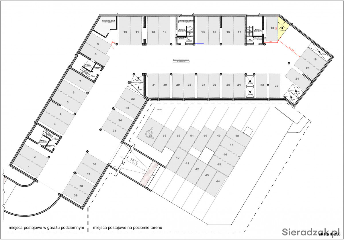 Do wynajęcia miejsce postojowe na motocykl w podziemnej hali garażowej przy ul. J. Popiełuszki 4 w Sieradzu. Miejsce stanowi trójkąt o wymiarach 4m x 3m x 5m . Na wjeździe znajduje się system kamer monitorujących budynek. Brama na pilota.