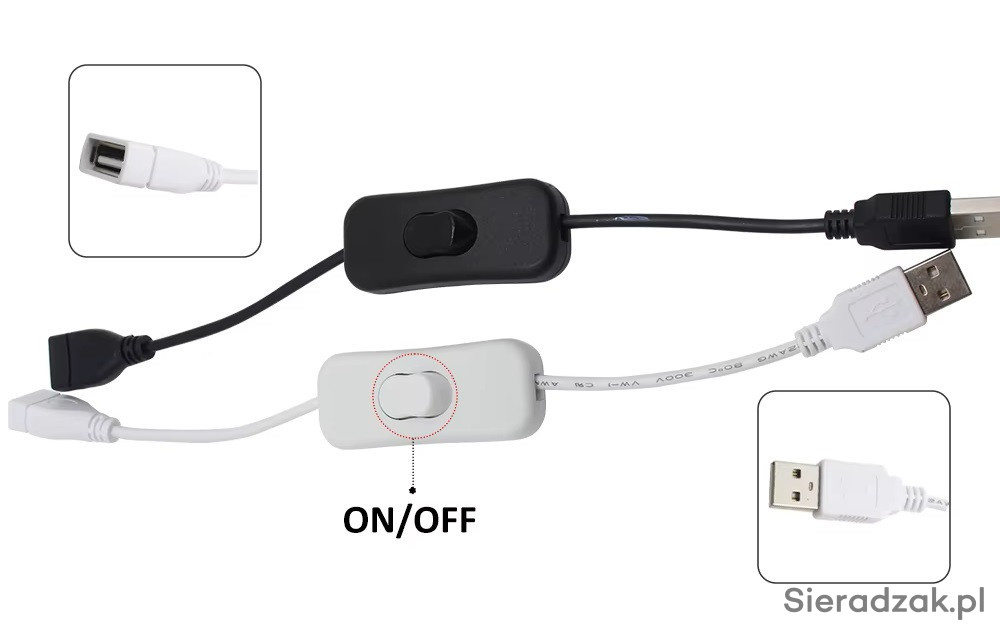 Model: adapter kablowy USB męski/żeński ON/OFF
