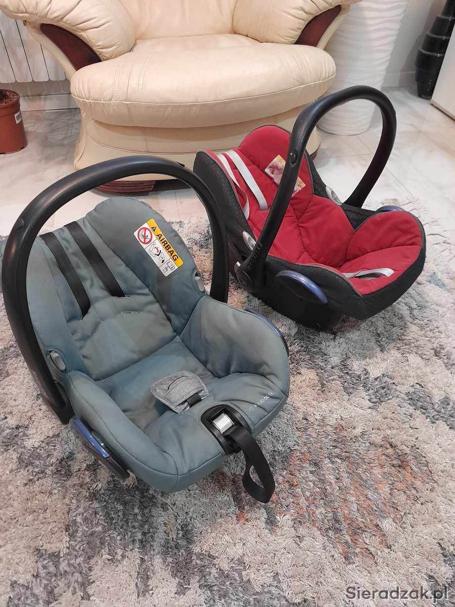 Do sprzedania mam dwa nosidełka firmy Maxi-cosi w stanie dobrym i bardzo dobrym. Normalne slady użytkowania. Czerwone mozna wpiąć do bazy isofix, zielone zapinane pasami. Posiadam rowniez adaptery do wozka (kompatybilne napewno z wózkami Bebetto)