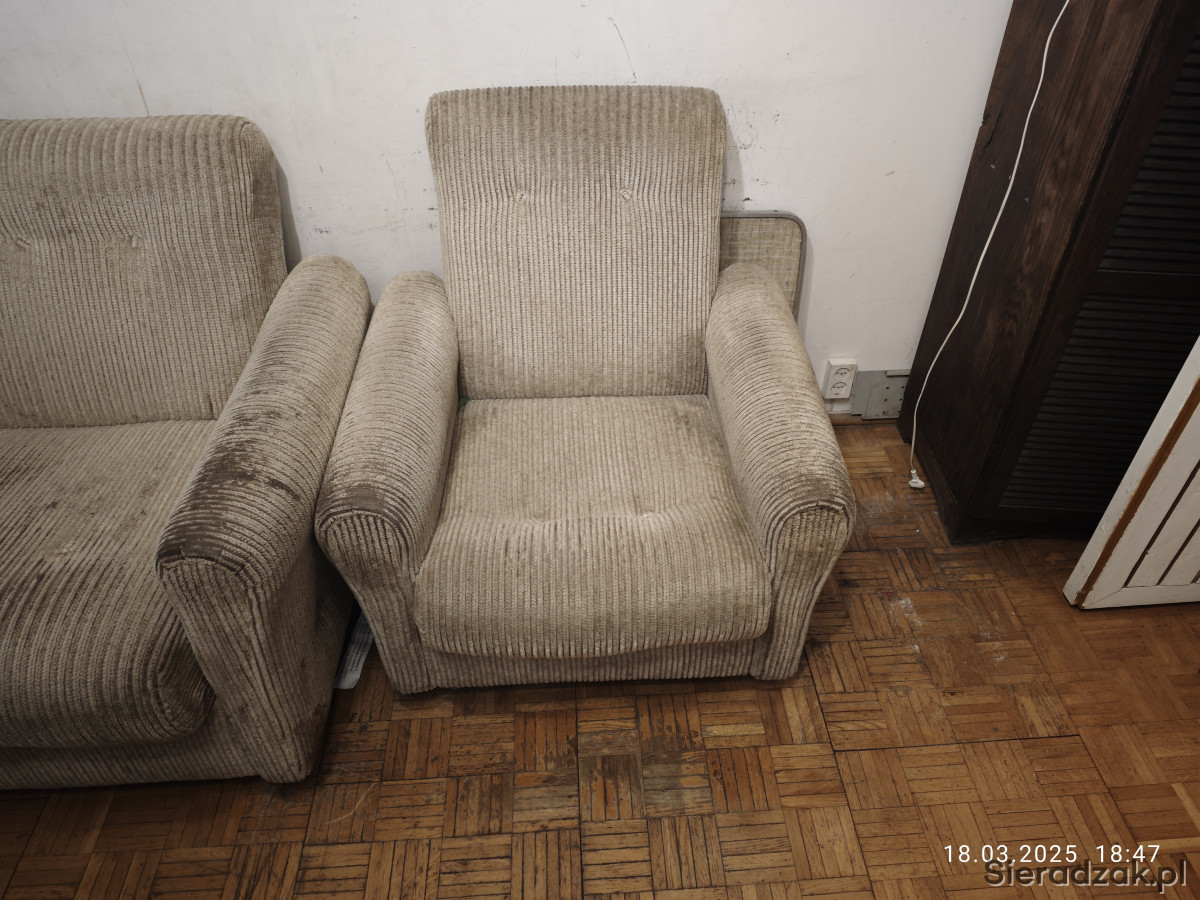 Oddam za darmo to co widać na zdjęciach dwie wersalki jedno pojedyncze rozkłdane łóżko, dwa fotele, jakaś szafa regał. Odbiór we własnym zakresie Sieradz, ul. Jana Pawła II, 3 piętro w bloku.