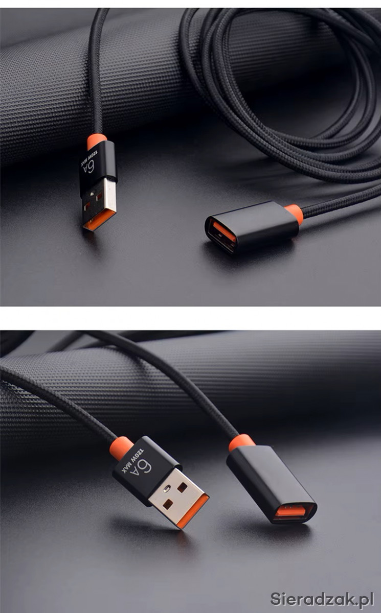 - Złącza: USB męski i żeński