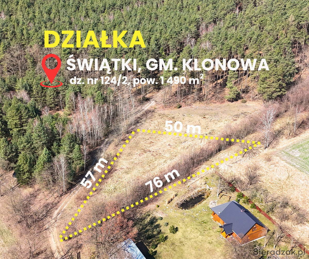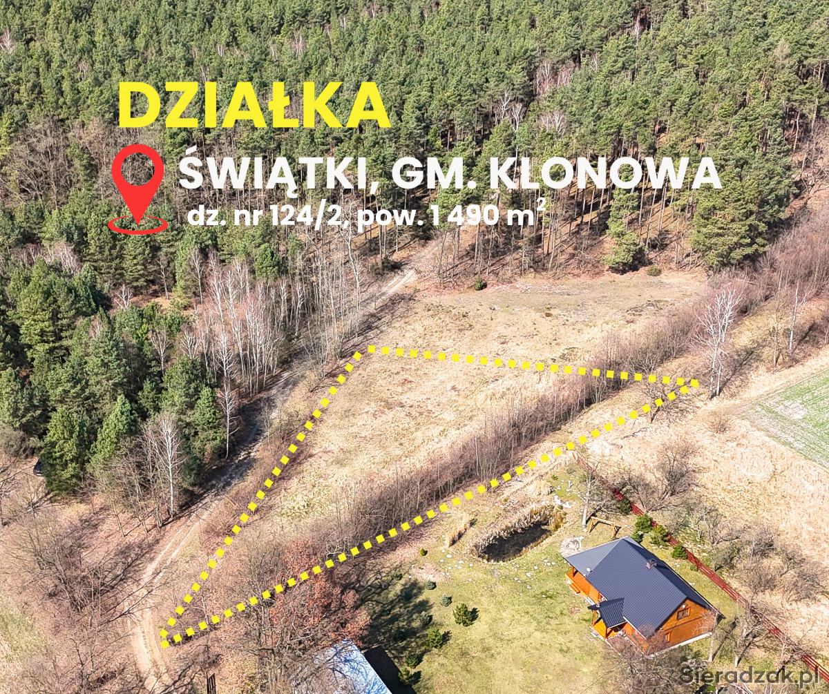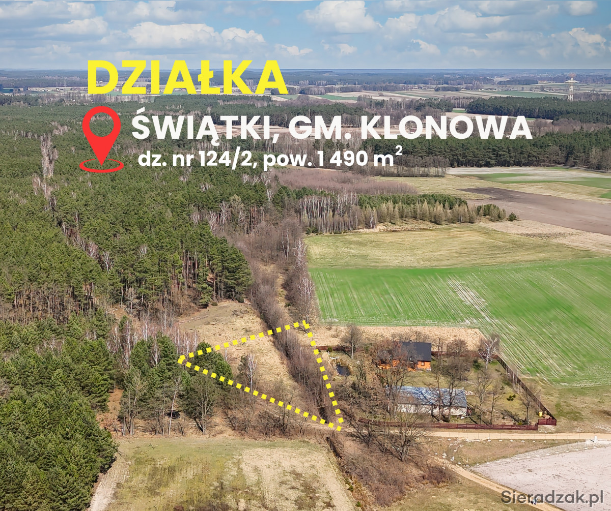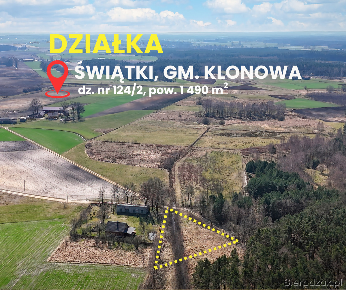 DO SPRZEDANIA DZIAŁKA BUDOWLANA O POW. 1 490 MKW POŁOŻONA W MIEJSCOWOŚCI ŚWIĄTKI GM. KLONOWA , POW. SIERADZKI.
