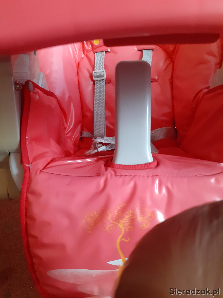 Krzesło do karmienia firmy Coneco. Regulowana wysokość, zdejmowana taca, możliwość całkowitego wypięcia jak i wpięcia podstawy z tacą. Szelki regulowane, można wypiąć celem np wyprania. Materiał całkowicie można zdjąć celem odświeżenia. W podstawie kółka do przemieszczania z blokadą.