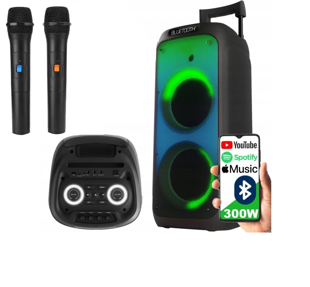 Wysokiej jakości kolumna głośnikowa aktywna Bluetooth z bezprzewodowymi mikrofonami oraz pilotem przeznaczonym do obsługi zdalnej. Muzykę można odtworzyć bezpośrednio ze swojego smartfona za pomocą funkcji Bluetooth, a dzięki wbudowanym licznym portom także z innych źródeł takich jak dysk USB czy karta microSD. Equalizer pozwoli na dostosowanie dźwięku do naszego gustu muzycznego, a zastosowanie podświetlenia LED w różnych kolorach uatrakcyjni wizualną stronę kolumny.