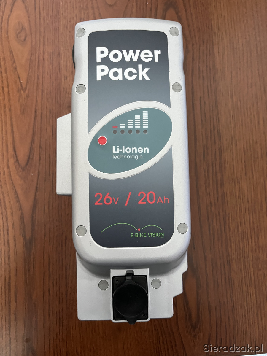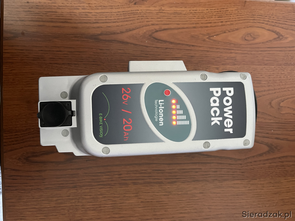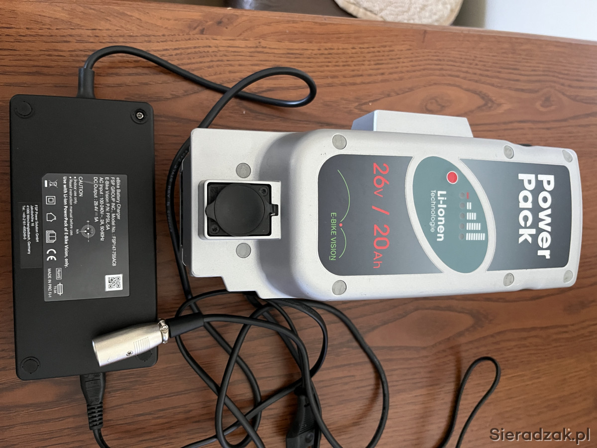 bateria do rowerowv system panasonic Power Pack 26v/20Ah wraz z ładowarką widoczna na zdjęciu . Po sprawdzeniu pojemności świecą się 5 kropki. Można ładować takrze org ładowała.