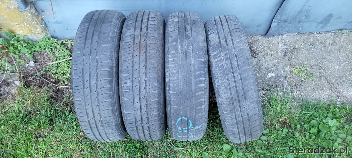 Sprzedam 4 opony letnie wraz z felgami Continental 155/80 R13, DOT 0105, bieżnik około 5mm. Opony oraz felgi (4x100) w dobrym stanie.