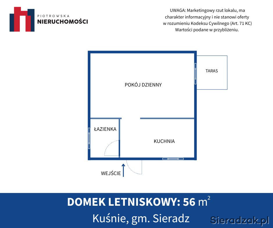 Staramy się, aby informacja dotycząca oferowanej nieruchomości była możliwie dokładna, kompletna i aktualna. Opis oferty zawarty na stronie internetowej sporządzany jest na podstawie oględzin nieruchomości oraz informacji uzyskanych od właściciela, może podlegać aktualizacji. Informacja ta nie stanowi oferty w rozumieniu przepisów prawa i winna być interpretowana jedynie jako informacja o której mowa w art. 71 KC.