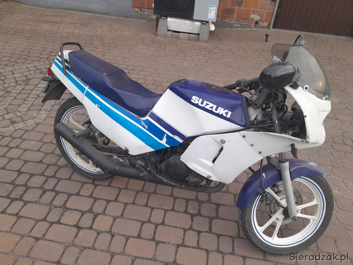 Witam serdecznie. Na sprzedaż Suzuki Rg 80, rok produkcji 1990, motorek zarejestrowany, opłacony, ważny przegląd. Stan dobry, uszkodzony wałek startera( co jest norma w tych modelach)