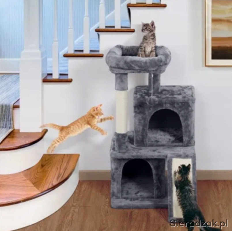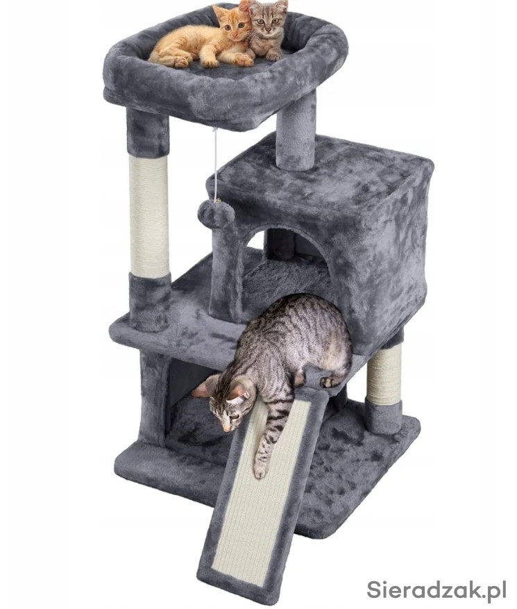 Solidny i przytulny Ten 3-poziomowy drapak dla kota wykonany jest z płyty wiórowej pluszu, lin sizalowych, metalu, rurek papierowych i plastiku. Wybrane materiały są wytrzymałe i wystarczająco przytulne do spania i zabawy. Twoje urocze koty się w nim zakochają. Ten pluszowy drapak jest odpowiedni dla 2-3 małych i średnich kotów.