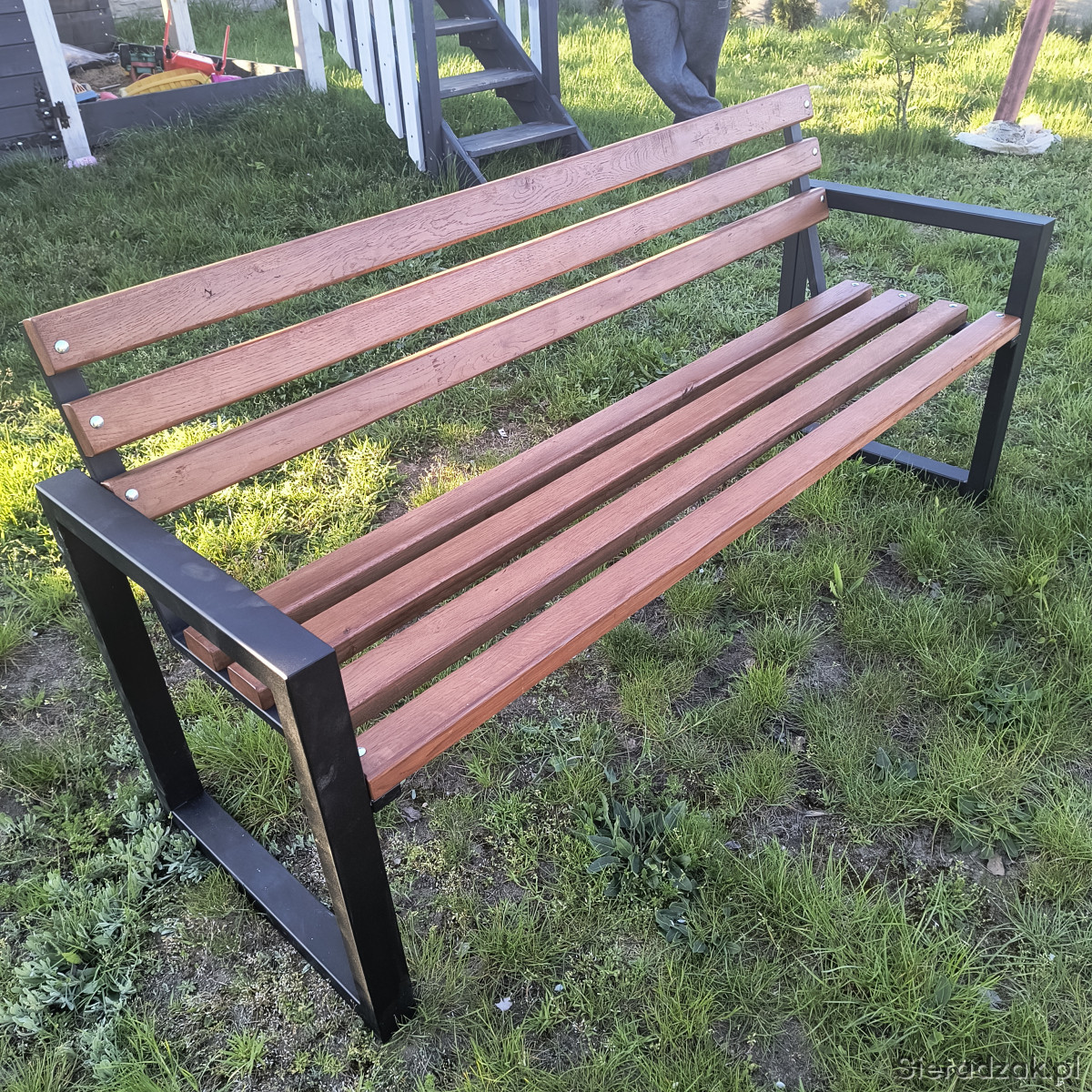 Na sprzedaż wyjątkowa ławka ogrodowa w stylu loftowym, łącząca naturalne piękno dębu z nowoczesną, industrialną formą.