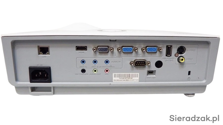 Złącza wejścia/wyjścia Wej. VGA (D-Sub 15 styków) (x2), Liczba gniazd HDMI (x1), S-Video (x1), Composite Video (x1), Wej. audio (Mini Jack) (x3), Wyj. VGA (D-Sub 15 styków) (x1), Wyj. audio (Mini Jack) (x1), RJ45 (x1), Kompatybilność z IP Telnet przez RJ-45 , Trigger (12V) (x1), RS-232 (x1), USB miniB (funkcja serwisowa), Mikrofon (Mini Jack) (x1)