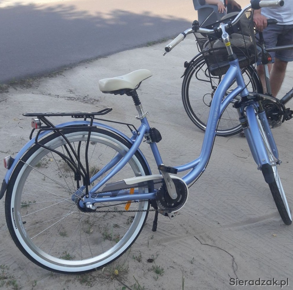 Sprzedam rower damski w bardzo dobrym stanie, oświetlenie sprawne. Koszyk w zestawie.