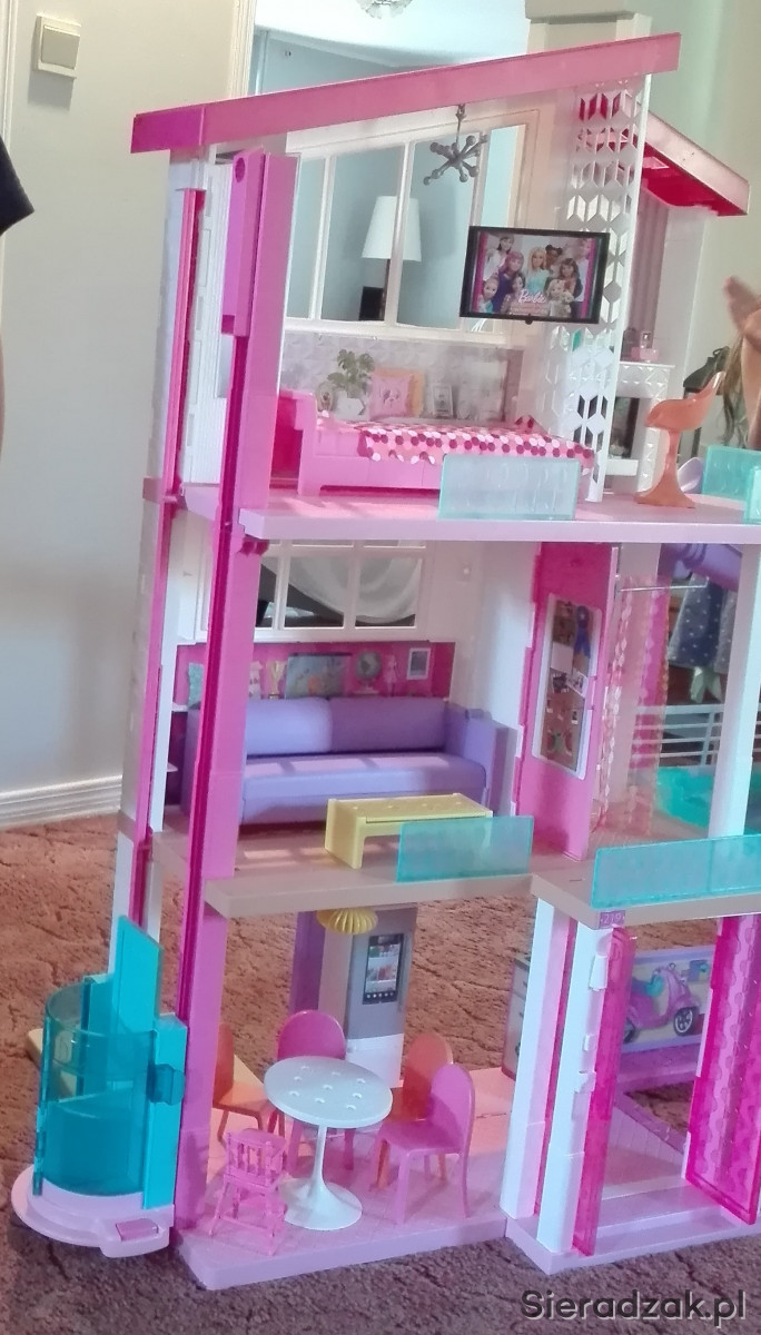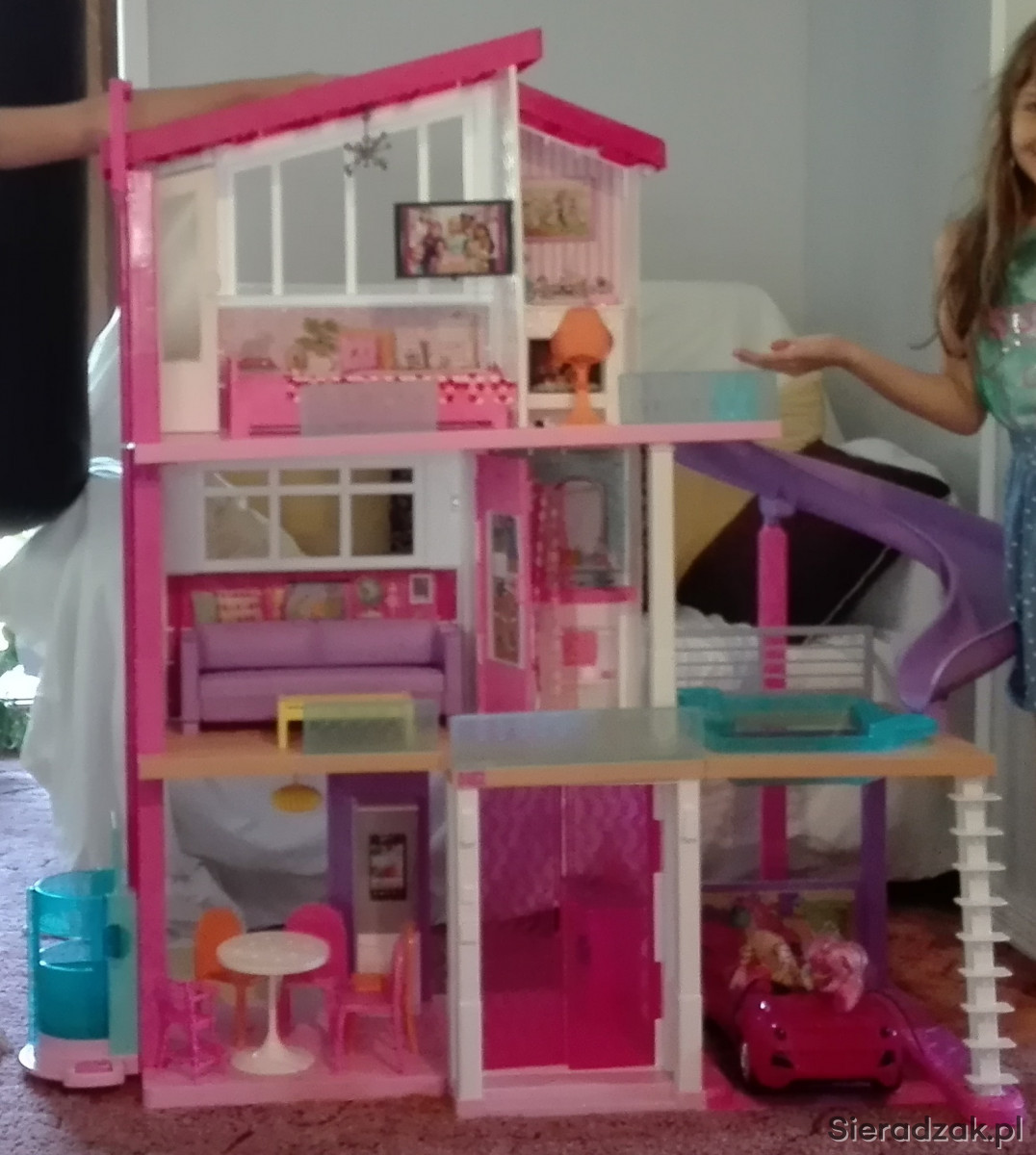 Sprzedam ogromny domek dla Barbie, z basenem , zjeżdżalnią i windą. Domek nie składa się. Odbiór w całości, osobisty. Stan bardzo dobry. Jedyny mankament to drobny odprysk kawałka dachu. Meble kompletne.