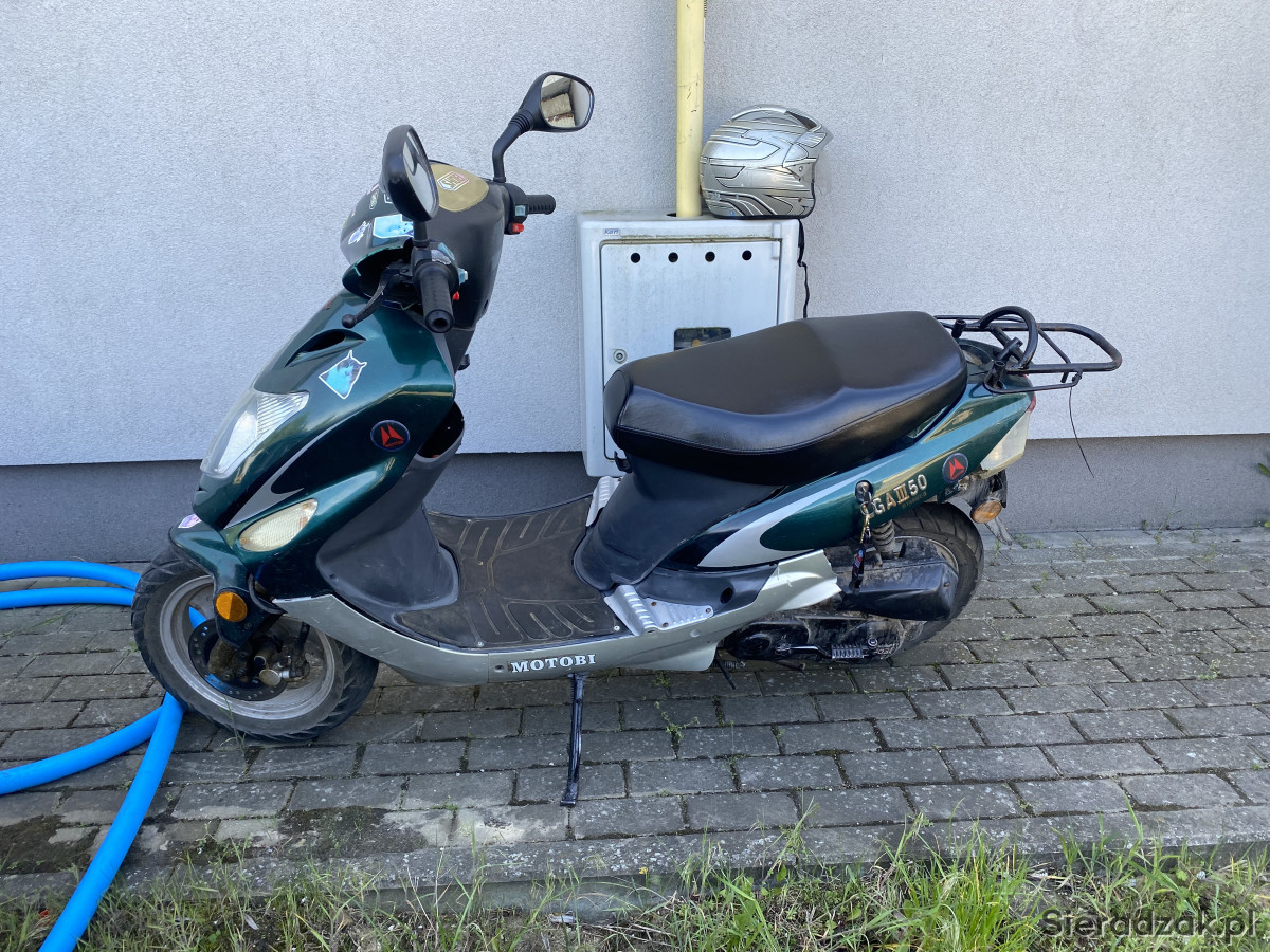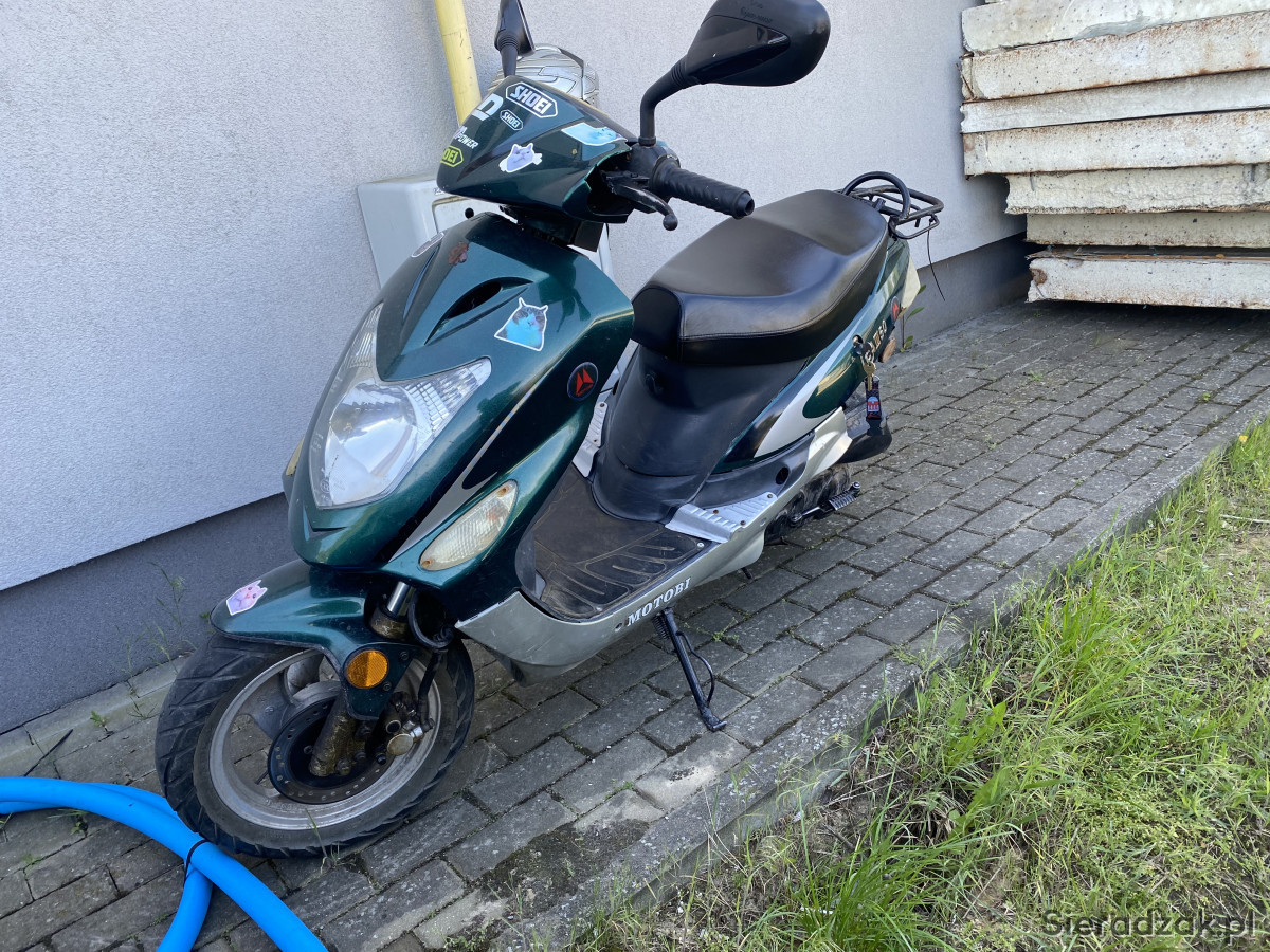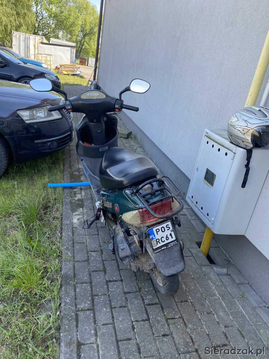 Witam na sprzedaż posiadam skuter widoczny na zdjęciach. Skuter 50ccm w 4 suwie można jeździć na dowód osobisty. Skuterek pracuje cicho, chodzi na równych obrotach, nie kopci, ma moc. Świeżo po wymianie oleju i czyszczeniu gaźnika. Oc i przegląd aktualne. Więcej informacji pod numerem telefonu. 889987476. Pozdrawiam