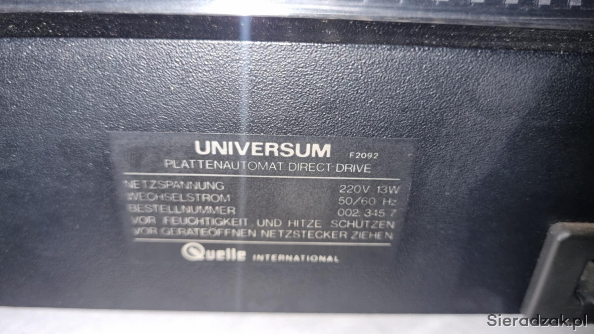 Jeden z najwyższych modeli oraz najdroższych produktów od Universum. Profesor wśród gramofonów. Skonstruowany bez kompromisów. W pełni automatyczny, ze stroboskopem. Posiada system Anti-Skating oraz ciekawą funkcję Repeat. Talerz wykonany z aluminium. Cała baza ramienia oraz ramię wykonane z metalu. Całość napędza potężny silnik, który widać od spodu plinty. Nóżki regulowane, tak aby ustawić właściwy poziom gramofonu.