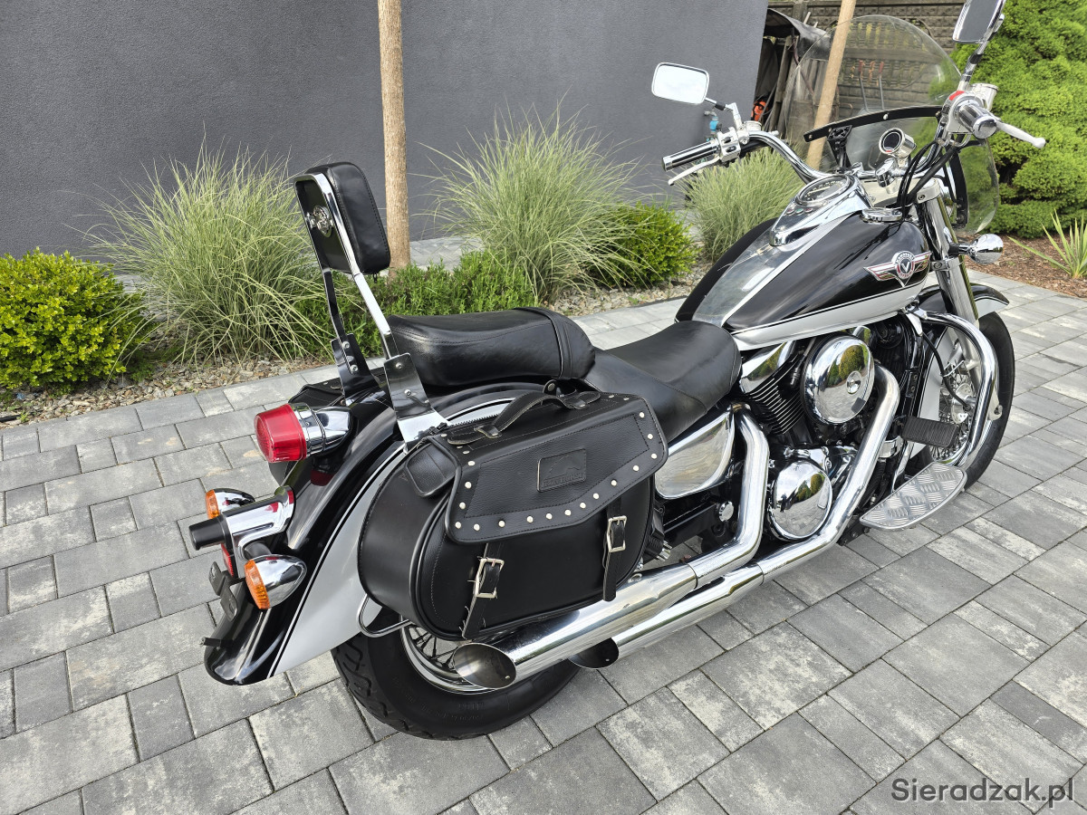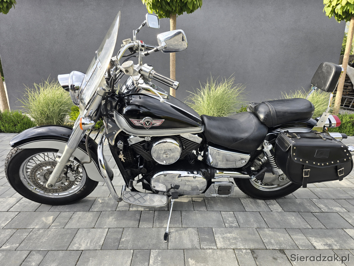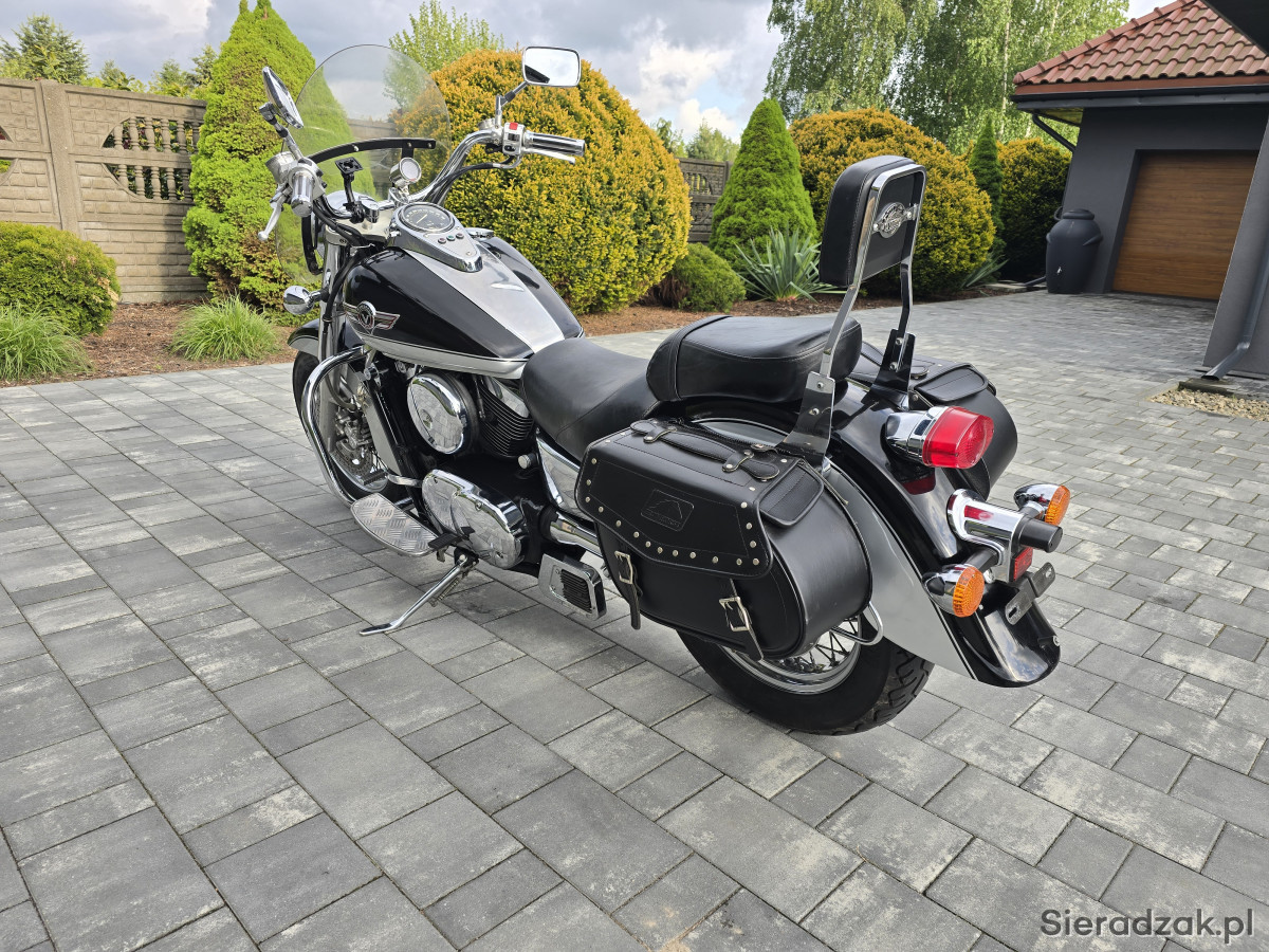 Do sprzedania Kawasaki VN1500 Vulcan z 1998r. (wersja europejska). Motocykl świeżo sprowadzony z Niemiec bezpośrednio od właściciela z domu. Wizualnie prezentuje się bardzo ładnie. Posiada jedynie normalne ślady użytkowania. Chromy w bardzo ładnym stanie. Mechanicznie wszystko w pełni sprawne. Silnik, skrzynia, sprzęgło i hamulce działają jak należy. Opony w bardzo ładnym stanie. Oryginalny przebieg 33856km udokumentowany do samego końca. Motocykl świeżo po czyszczeniu gaźnika w myjce ultradźwiękowej. Założony został nowy zaworek iglicowy i nowa uszczelka komory pływakowej. Dodatkowo motocykl ma założony nowy filtr powietrza oraz nowe klocki hamulcowe przód i tył. Kawasaki wyposażone w wydech Vance&Hines wraz z DBkillerami, gmole, szybę, obrotomierz Koso, sakwy boczne, daszek lampy itp. Do motocykla jest pełna dokumentacja (mały i duży Brief, instrukcje, serwis manual, wydruki z przeglądó TUV i komplet kluczyków). Kupujący zwlniony z opłaty skarbowej. Zapraszam na oględziny i jazdę próbną. Możliwość dowozu motocykla do klienta. Na więcej pytań chętnie odpowiem pod numerem telefonu 667-702-600. Możliwość zdalnego zakupu motocykla.