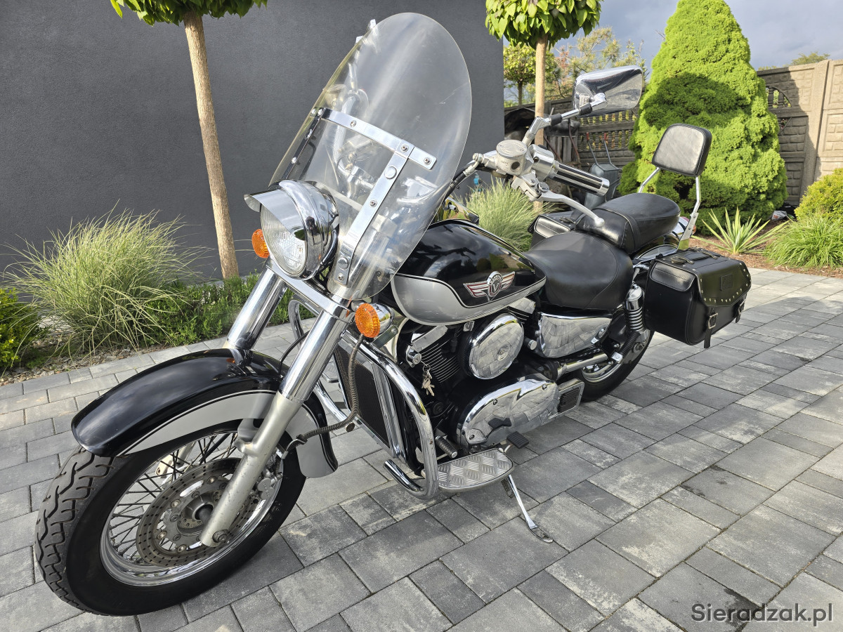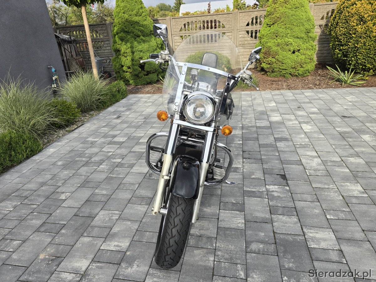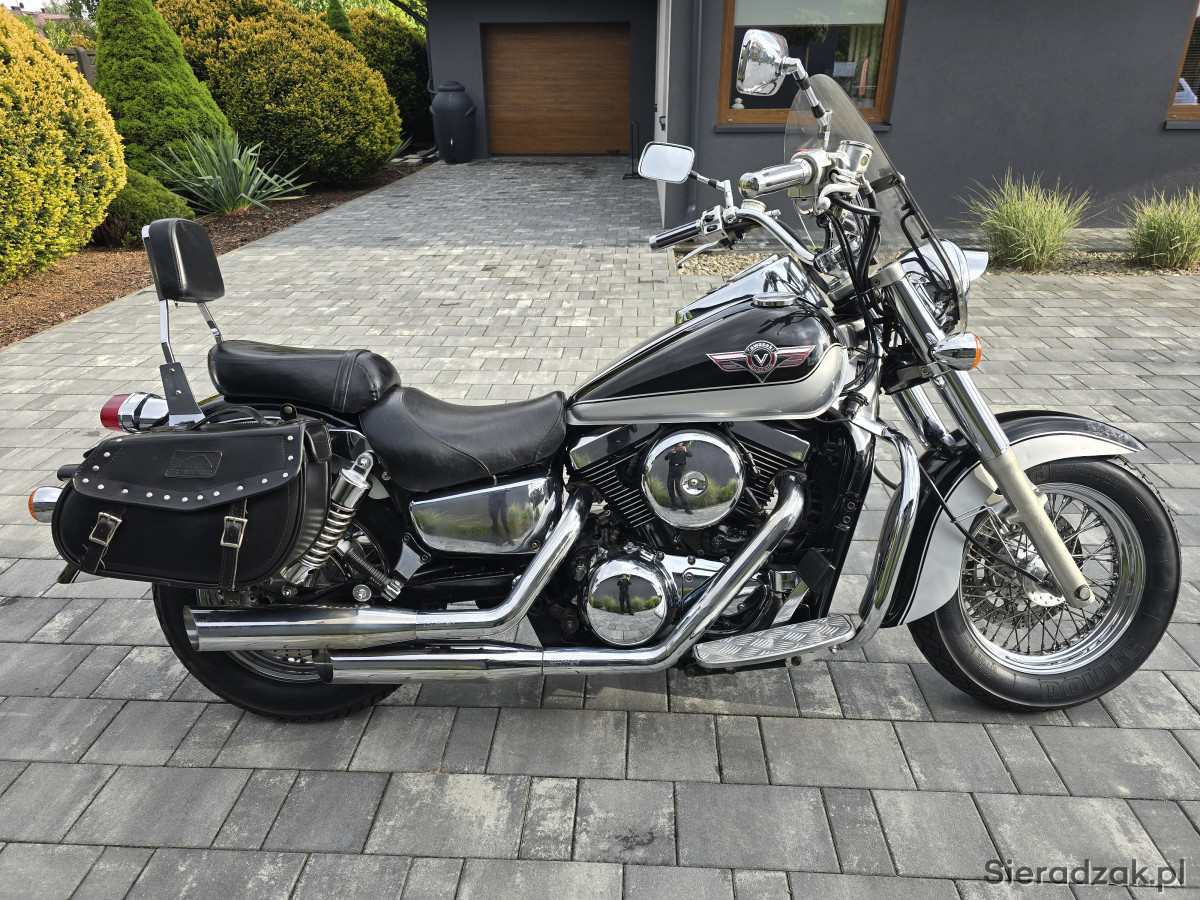Do sprzedania Kawasaki VN1500 Vulcan z 1998r. (wersja europejska). Motocykl świeżo sprowadzony z Niemiec bezpośrednio od właściciela z domu. Wizualnie prezentuje się bardzo ładnie. Posiada jedynie normalne ślady użytkowania. Chromy w bardzo ładnym stanie. Mechanicznie wszystko w pełni sprawne. Silnik, skrzynia, sprzęgło i hamulce działają jak należy. Opony w bardzo ładnym stanie. Oryginalny przebieg 33856km udokumentowany do samego końca. Motocykl świeżo po czyszczeniu gaźnika w myjce ultradźwiękowej. Założony został nowy zaworek iglicowy i nowa uszczelka komory pływakowej. Dodatkowo motocykl ma założony nowy filtr powietrza oraz nowe klocki hamulcowe przód i tył. Kawasaki wyposażone w wydech Vance&Hines wraz z DBkillerami, gmole, szybę, obrotomierz Koso, sakwy boczne, daszek lampy itp. Do motocykla jest pełna dokumentacja (mały i duży Brief, instrukcje, serwis manual, wydruki z przeglądó TUV i komplet kluczyków). Kupujący zwlniony z opłaty skarbowej. Zapraszam na oględziny i jazdę próbną. Możliwość dowozu motocykla do klienta. Na więcej pytań chętnie odpowiem pod numerem telefonu 667-702-600. Możliwość zdalnego zakupu motocykla.