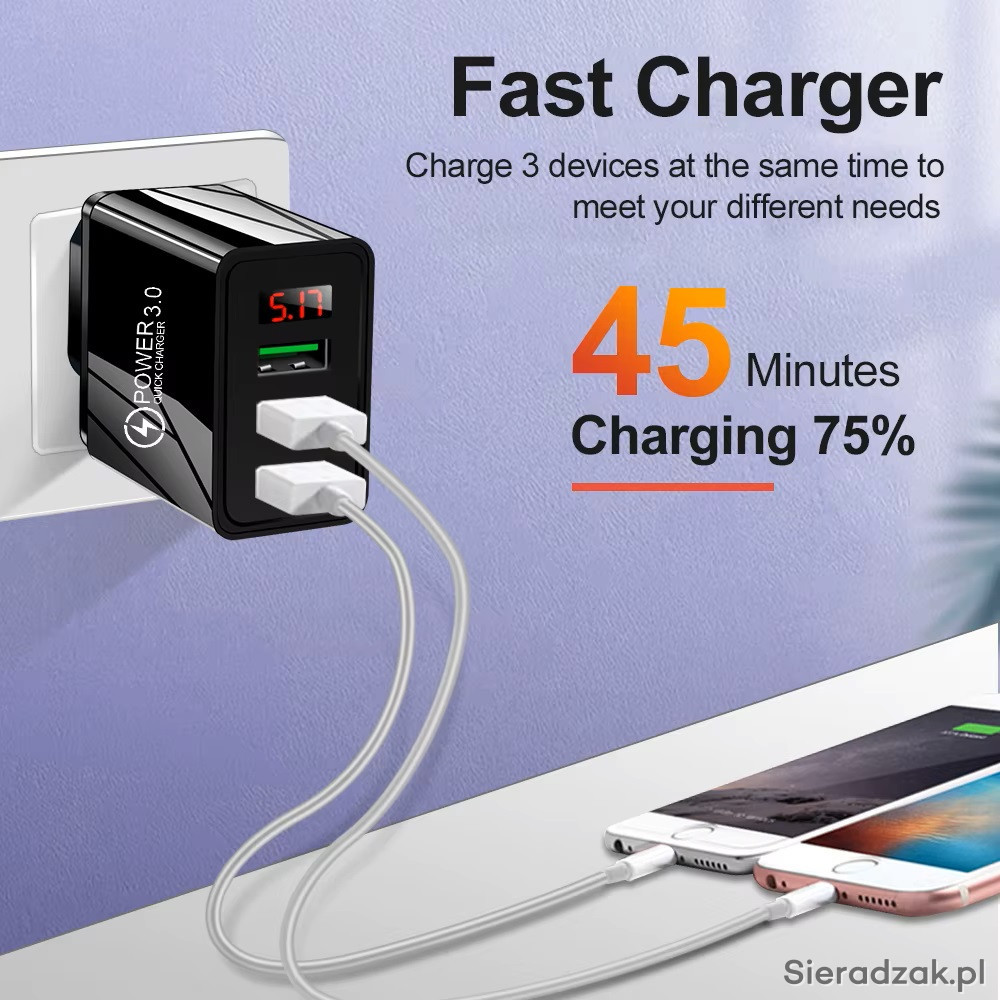 Posiadają 3 gniazda USB o prądzie ładowania 3,0A każdy.